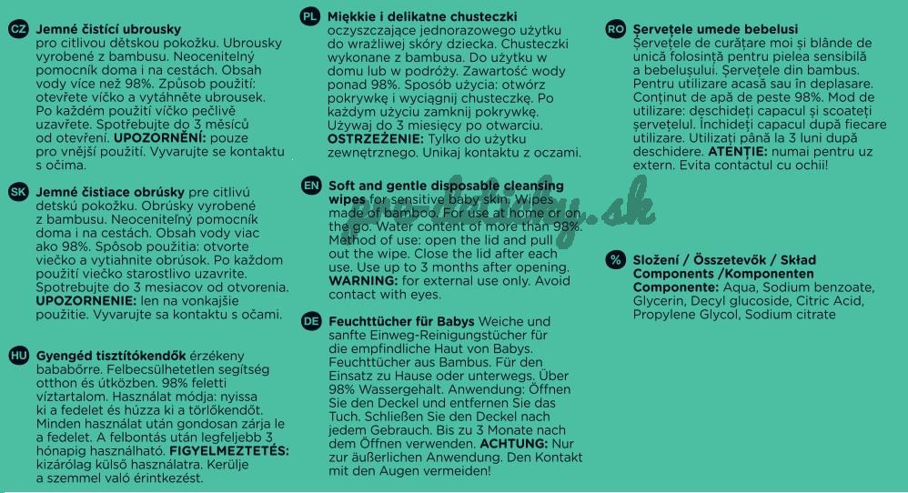 Môžete ich používať pri prebaľovaní, pri jedle, na prechádzke, na výlete alebo na dovolenke, vlastne kdekoľvek. Okrem čistenia po výmene plienky sú skvelé aj na čistenie špinavých ručičiek po hre alebo tváričky po jedle.