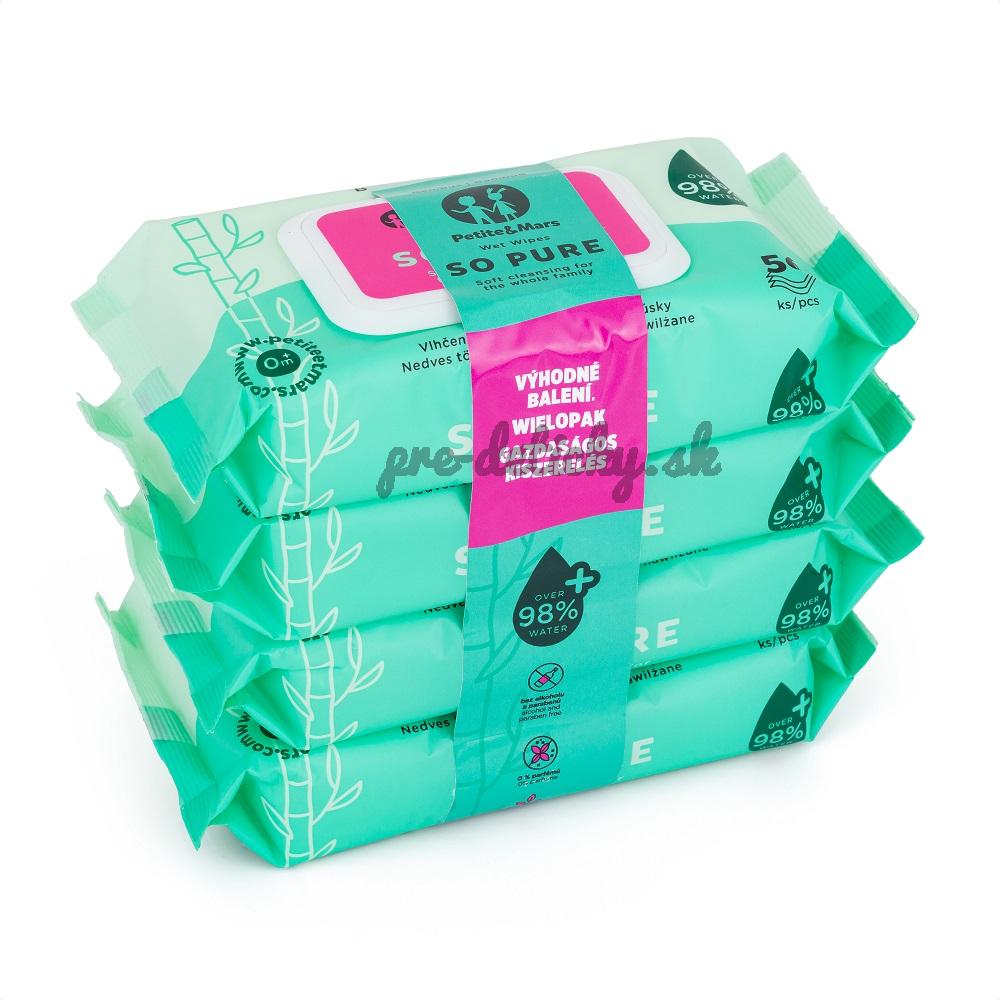4x PETITE&MARS Obrúsky vlhčené SO PURE bambusové bioodbúrateľné 56 ks