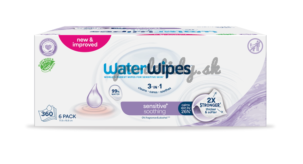 Waterwipes Soothing Clean kombinuje účinnú a hĺbkovú čistiacu silu jedinečnej 7-stupňovej technológie vody s prírodnými rastlinnými látkami, ktoré pomáhajú upokojiť pokožku.