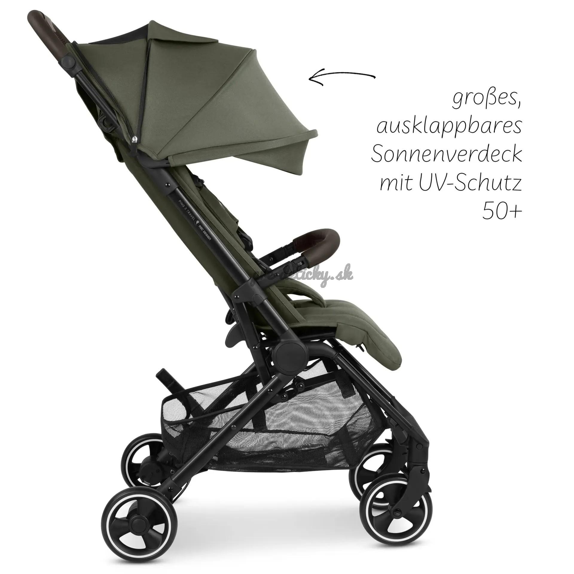 Náš kočík Ping 3 Trekking je kompaktný a možno ho vziať do lietadla ako príručnú batožinu. Maximálna povolená veľkosť príručnej batožiny sa však môže líšiť v závislosti od leteckej spoločnosti. Preto si pred cestou skontrolujte skutočné rozmery príručnej batožiny a pokyny vašej leteckej spoločnosti, aby ste sa uistili, že kočík spĺňa požiadavky.