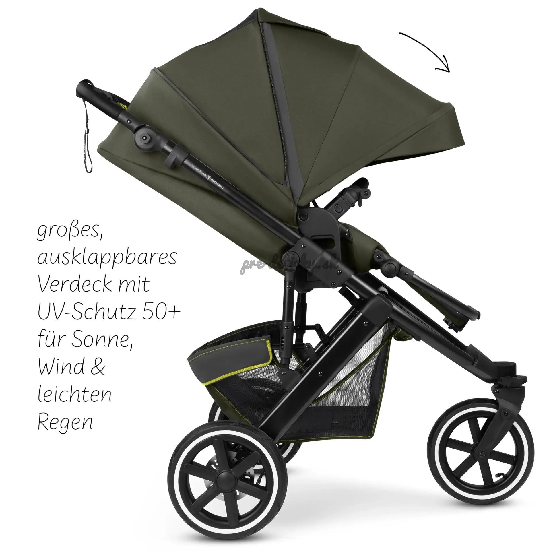 Pohodlne polstrované ramenné popruhy mierne vystupujú z operadla, čo výrazne uľahčuje usadenie dieťaťa. Ak chcete autosedačku Salsa 5 Run prepravovať, jednoducho ju kompaktne zložte. Ak ho potrebujete rýchlo premiestniť, môžete ho rýchlo zložiť aj pomocou nadstavca na kočík - bez ohľadu na to, či je sedadlo otočené v smere alebo proti smeru jazdy. Kočík Salsa 5 Run je stvorený na šport. To však nevylučuje každodenné používanie. Môžete si užívať plnú flexibilitu v každodennom živote tým, že ho budete používať na nenáročné prechádzky po meste, výlety mimo vyšliapaných ciest alebo aj na behanie.