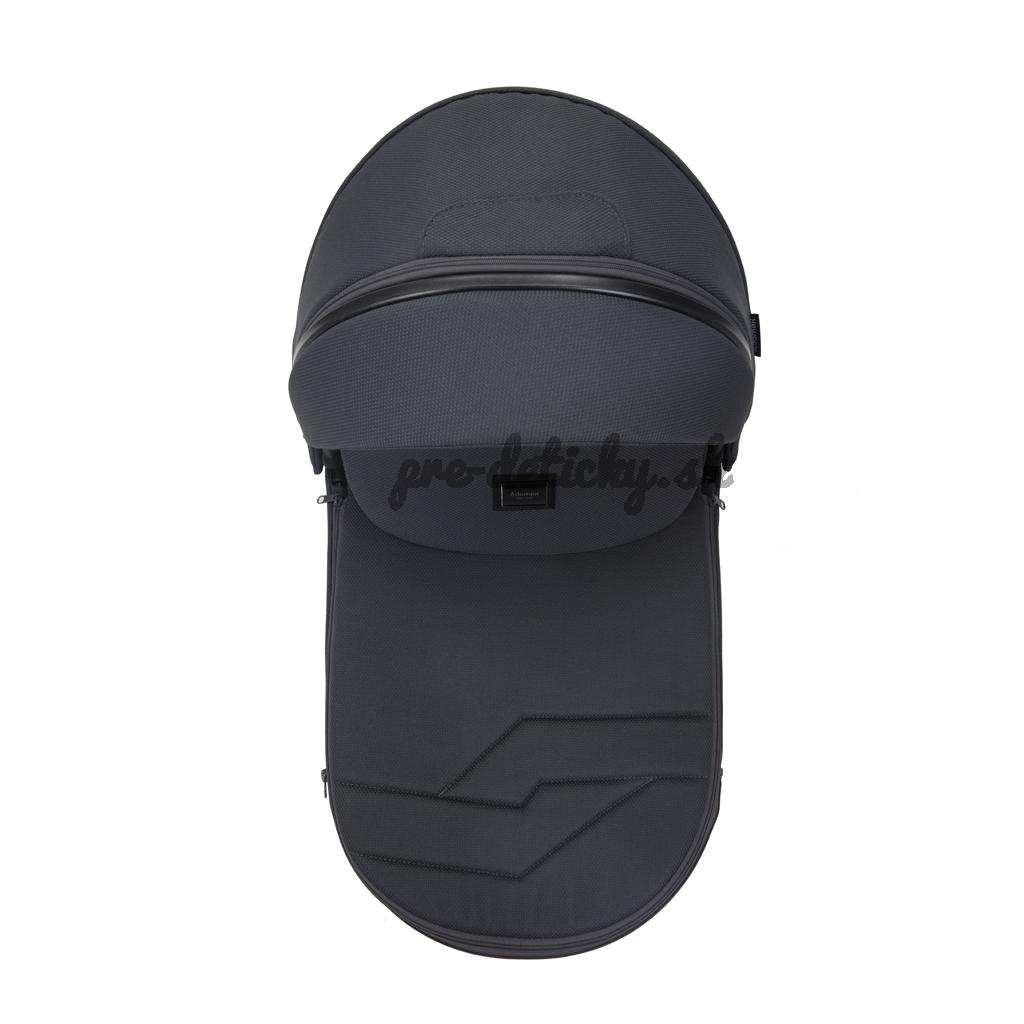 - Tento model sa vyznačuje plne odnímateľnou látkovou časťou striešky vaničky, ktorá je zospodu tvorená vzdušnou moskytiérou. Okrem toho má vanička dva vetracie otvory na zips (vpredu a vzadu).