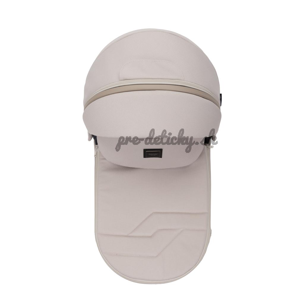 - Tento model sa vyznačuje plne odnímateľnou látkovou časťou striešky vaničky, ktorá je zospodu tvorená vzdušnou moskytiérou. Okrem toho má vanička dva vetracie otvory na zips (vpredu a vzadu).