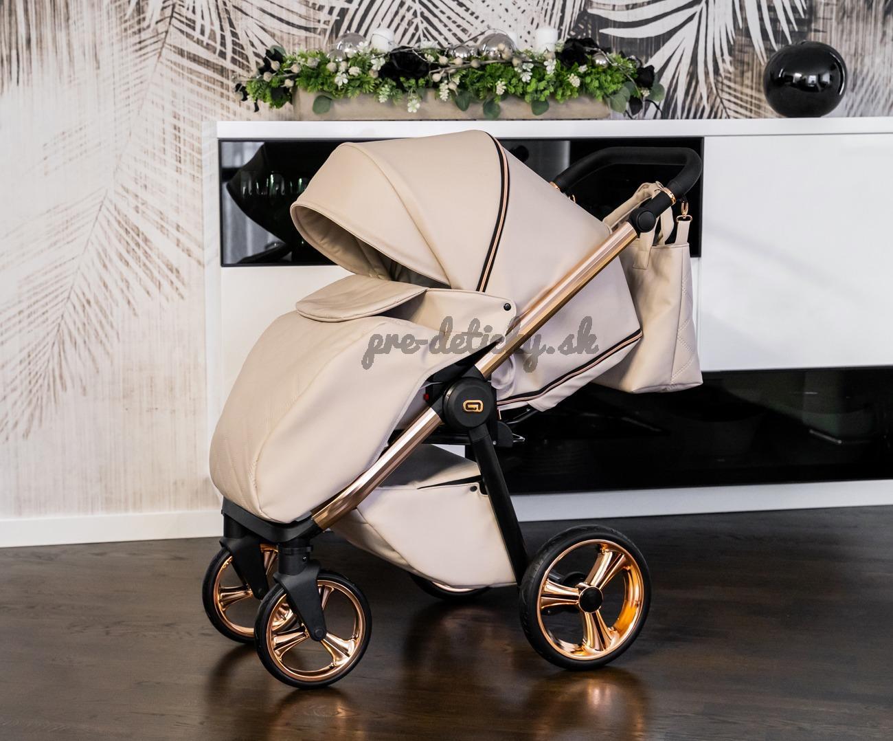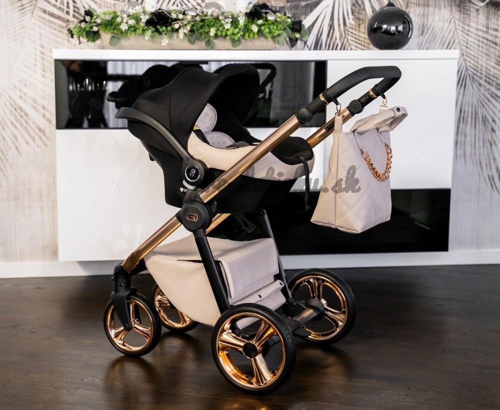 Moderný kombinovaný kočík s ľahkou hlinikovou konštrukciou a ultraľahkou vaničkou.