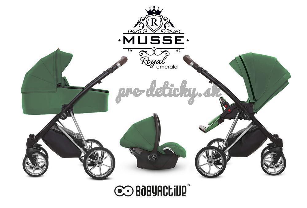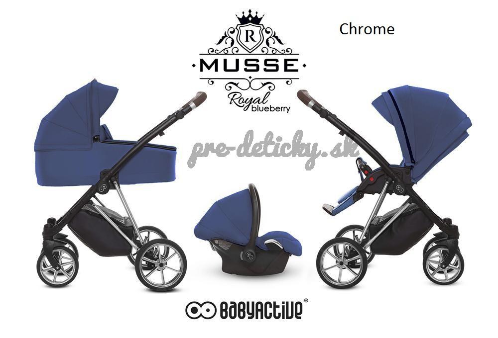 Spoločnosť Baby Active zostavila špeciálnu edíciu. Krásne navrhnutý a štylizovaný kočík. Nová kolekcia kočíkov Baby Active Musse má pevnú stabilnú konštrukciu. Kočík má kvalitné ložiskové gélové kolesá, ktoré poskytujú komfort pri jazde. Pohodlná a veľká nákupná taška je taktiež veľmi praktická v každodenných situáciách. Veľká priestranná vanička pre Vaše bábetko.