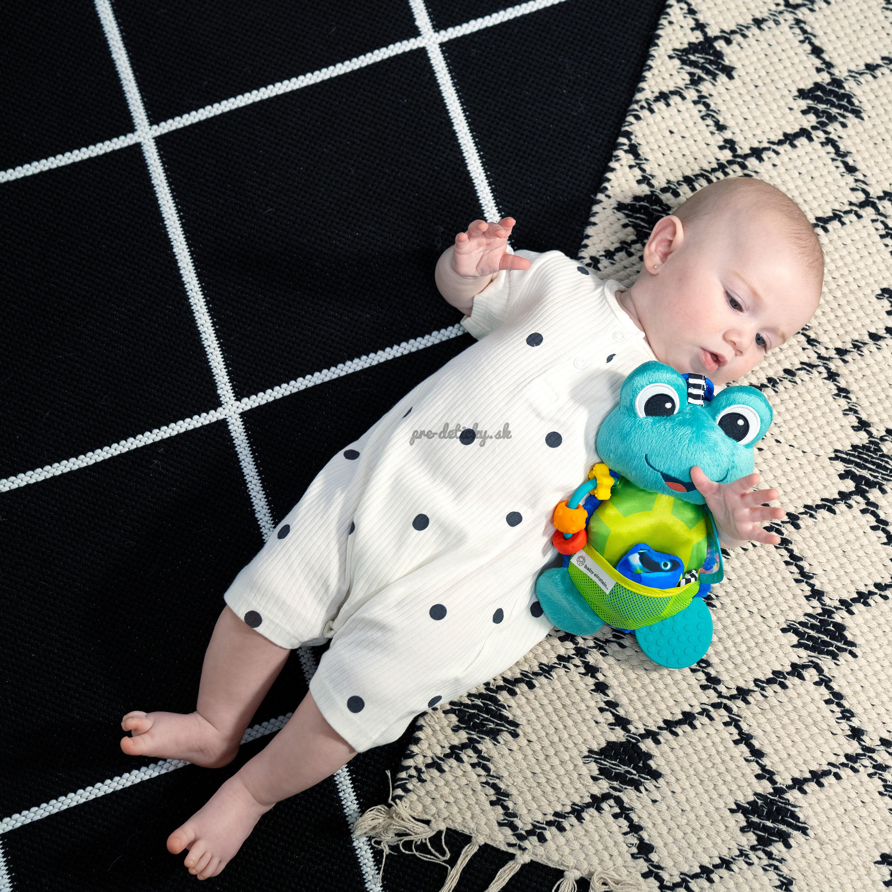 Baby Einstein Ocean Explorers prináša nového plyšového pomocníka v tvare korytnačky. Jedinečné textúry, zvuky, kontrastné farby a hmatové prvky stimulujú všetky zmysly vášho dieťaťa.