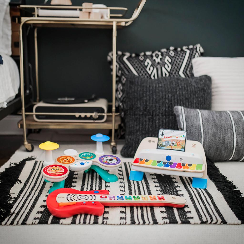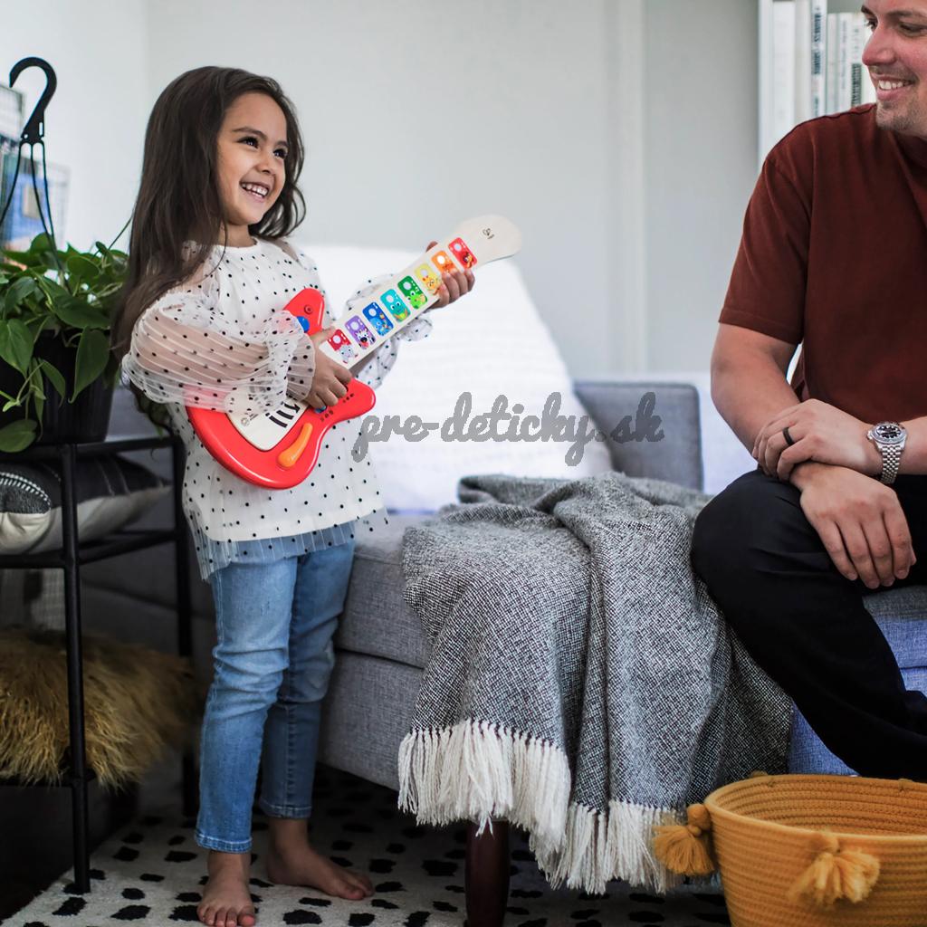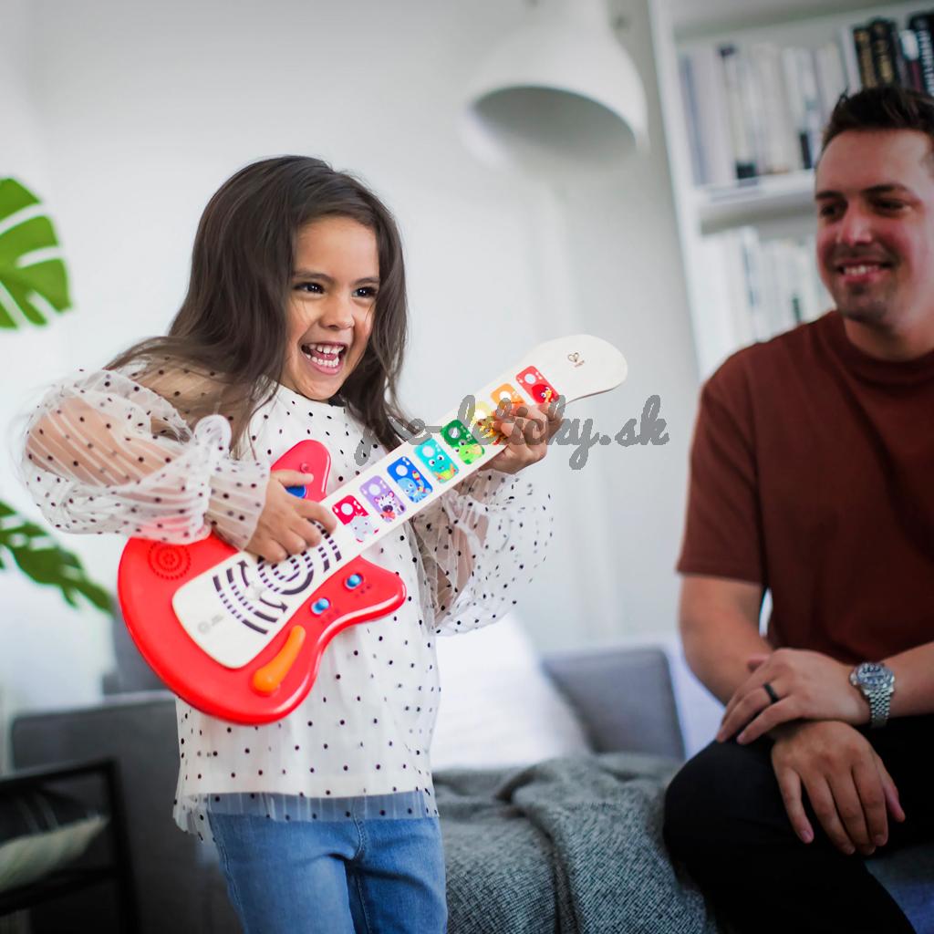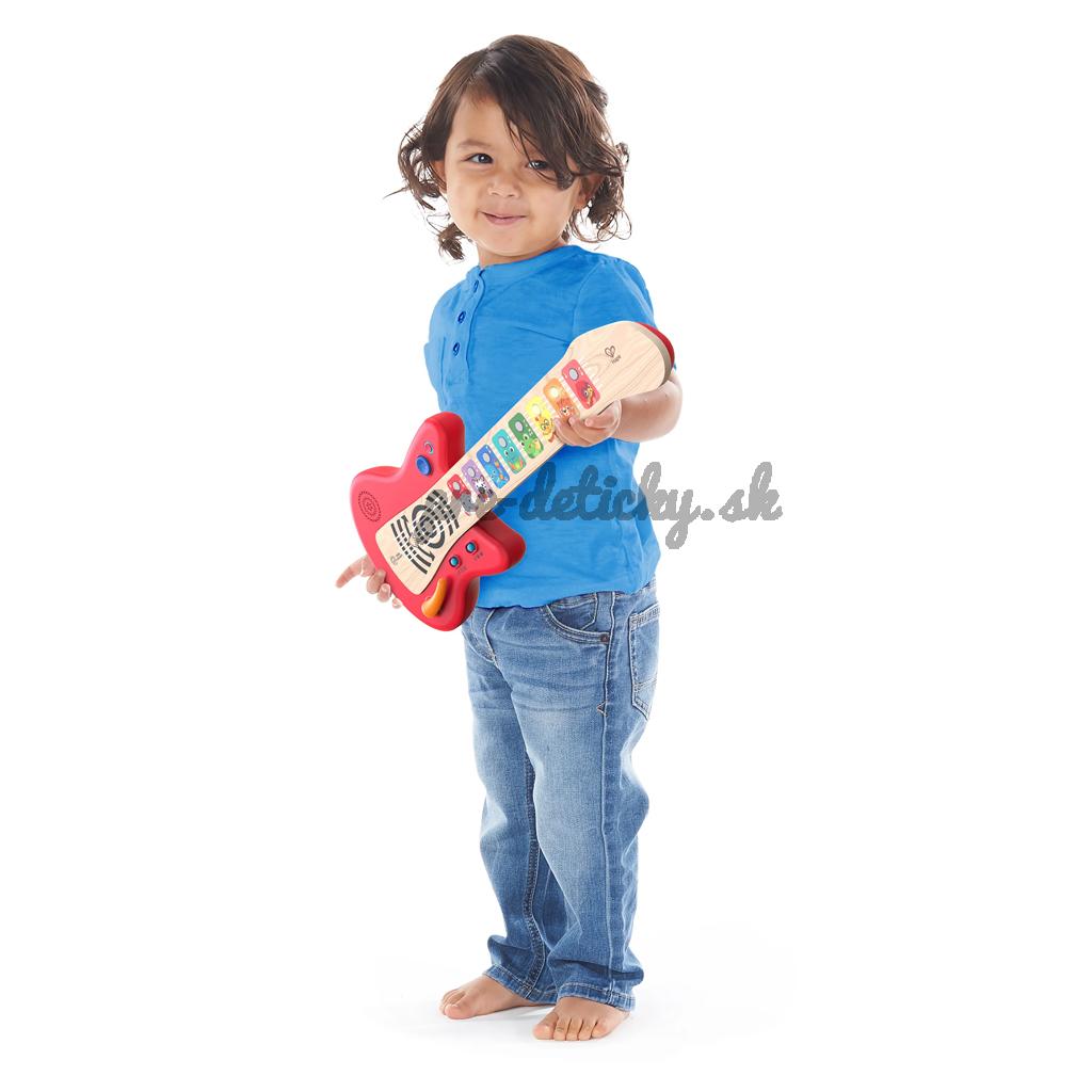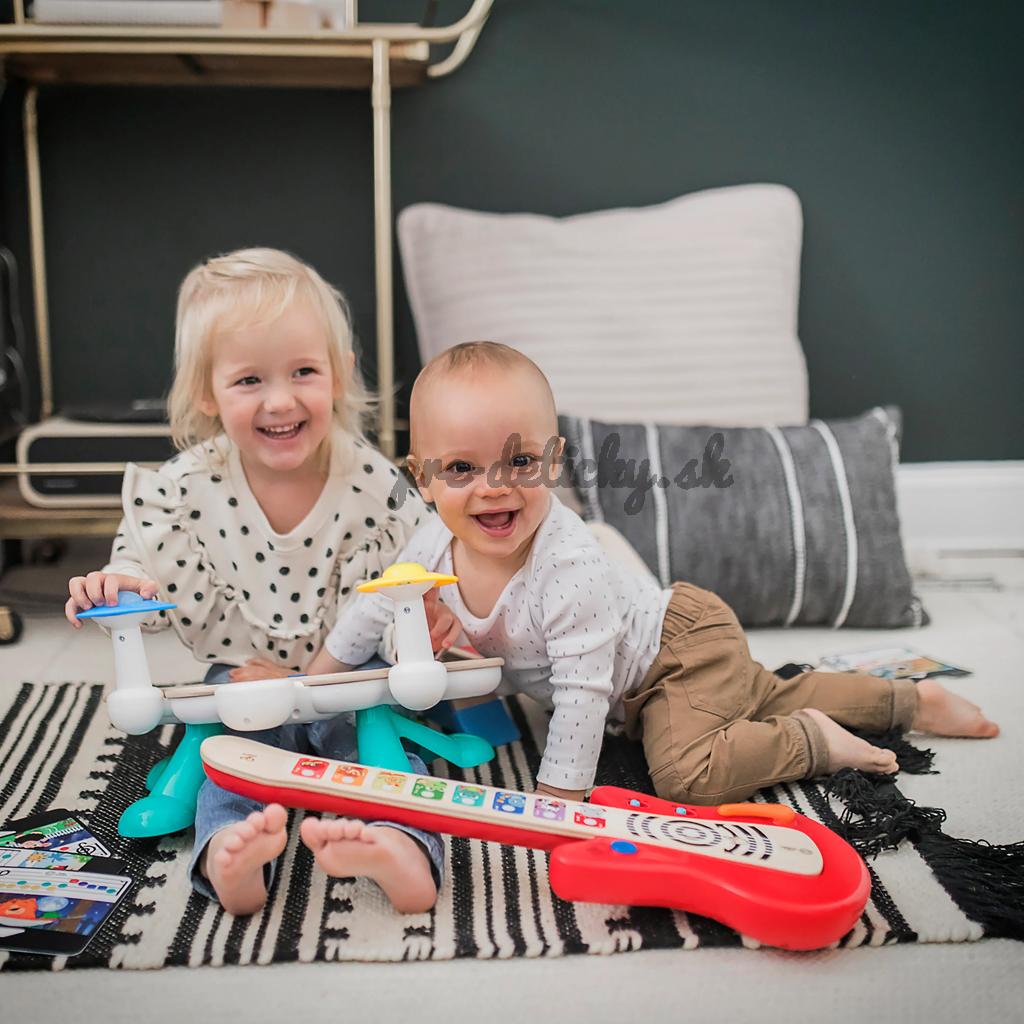 Chcete naučiť svoje deti hrať sa spolu v harmónii? Together in Tune Guitar™ je drevená hudobná hračka, ktorá im umožňuje džemovať samostatne alebo spolu so súrodencami a priateľmi. Bezdrôtovo sa pripája k ostatným nástrojom Together in Tune™ v dosahu a automaticky sa harmonizuje, čím vytvára nádhernú hudbu, ktorú si mama a otec užijú rovnako ako ich dojčatá a batoľatá. Bezpečné bezdrôtové spojenie medzi prístrojmi funguje ako vysielačka cez rádiové signály. Táto detská gitara v spolupráci medzi Hape™ a Baby Einstein™ podporuje rozvoj jemných motorických schopností. Technológia Magic Touch™ spája trvanlivosť a hodnotu klasickej drevenej hračky s najnovšou technológiou hudobných hračiek súčasnosti. Dokonca aj najjemnejšie poklepanie na celú oktávu farebných maľovaných pražcov vydáva skutočné gitarové zvuky. Táto detská gitara Baby Einstein, ktorá obsahuje 4 režimy (režim objavuj; režim predvádzania; režim hrania; režim kapely) a 10 populárnych melódií, dáva dieťaťu slobodu vytvárať si vlastné beaty, vrstviť riffy a jednoduché zvuky, rozhýbať sa a ovládať svoje obľúbené piesne. Ak hľadáte hudobnú hračku ako darček na oslavu bábätka alebo na prvé narodeniny, toto je tá správna. Vďaka drevenému dizajnu bez gombíkov sa táto hračka pre batoľatá mimoriadne ľahko čistí. Zahŕňa ovládanie hlasitosti Vypnúť/Nízka/Vysoká. Vhodné pre batoľatá a deti od 6 mesiacov.