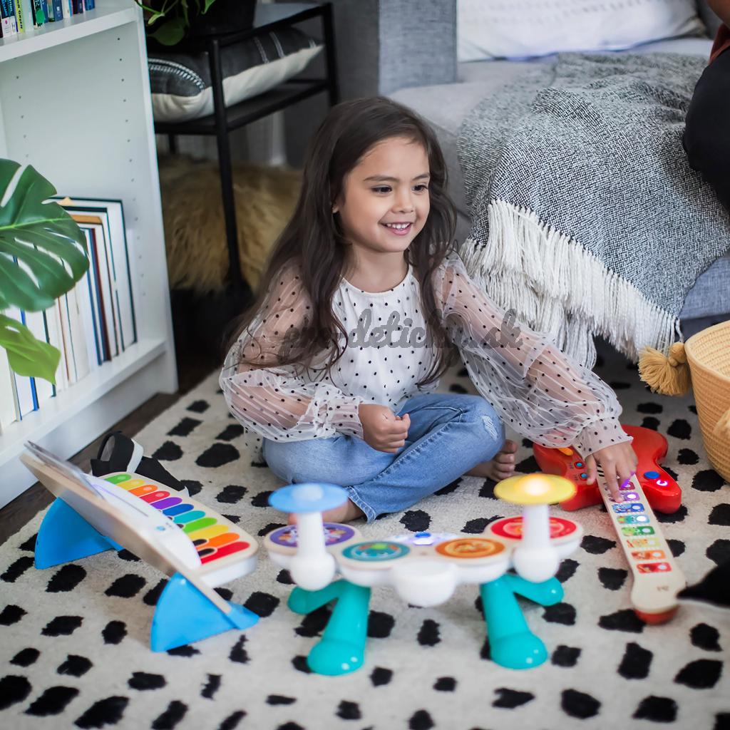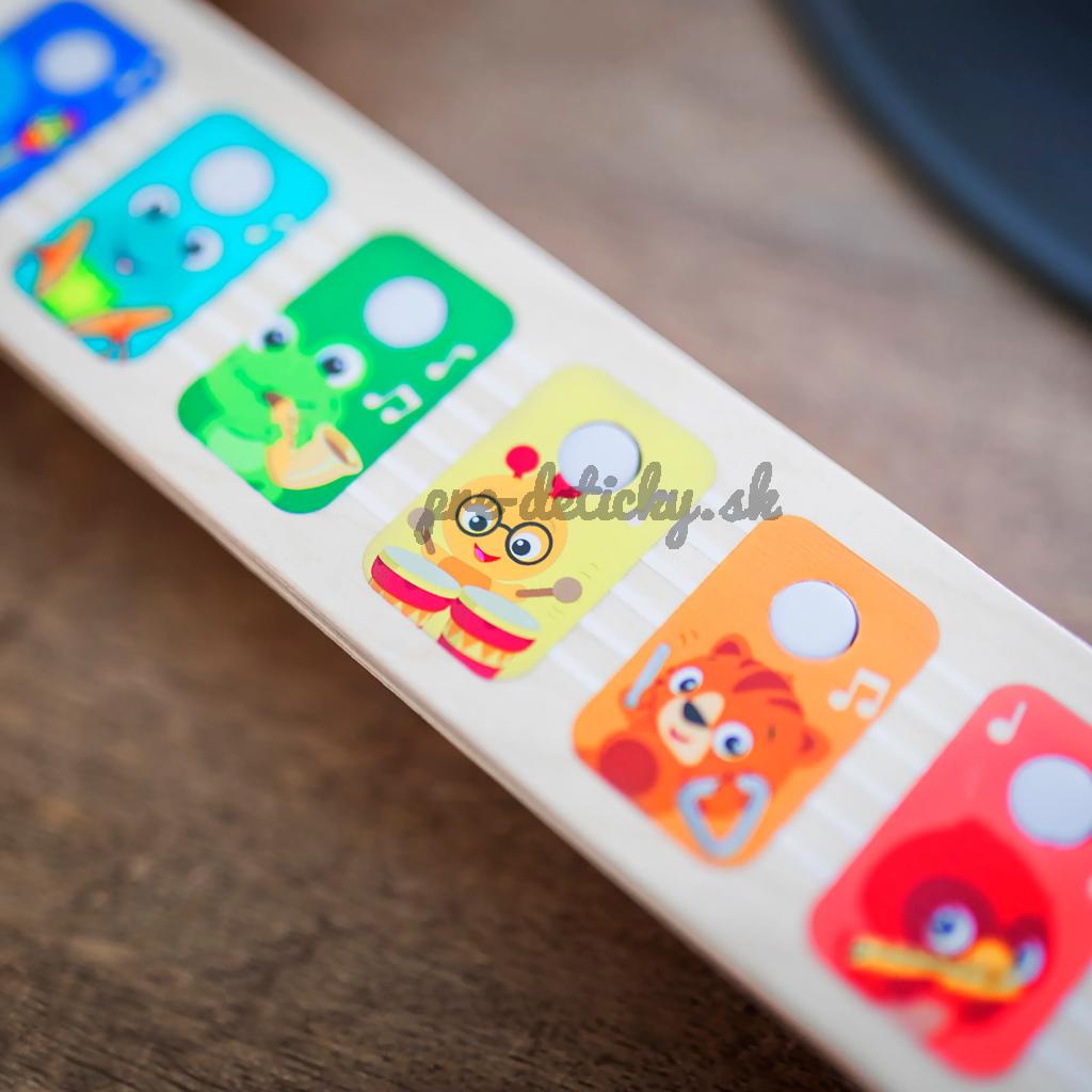 - Oceňovaná technológia Magic Touch™ – Všetka trvanlivosť a pamätná hodnota klasickej drevenej hračky, povýšenej pomocou najnovších technológií. Dokonca aj najjemnejšie poklepanie na farebné maľované pražce vydáva skutočné gitarové zvuky.