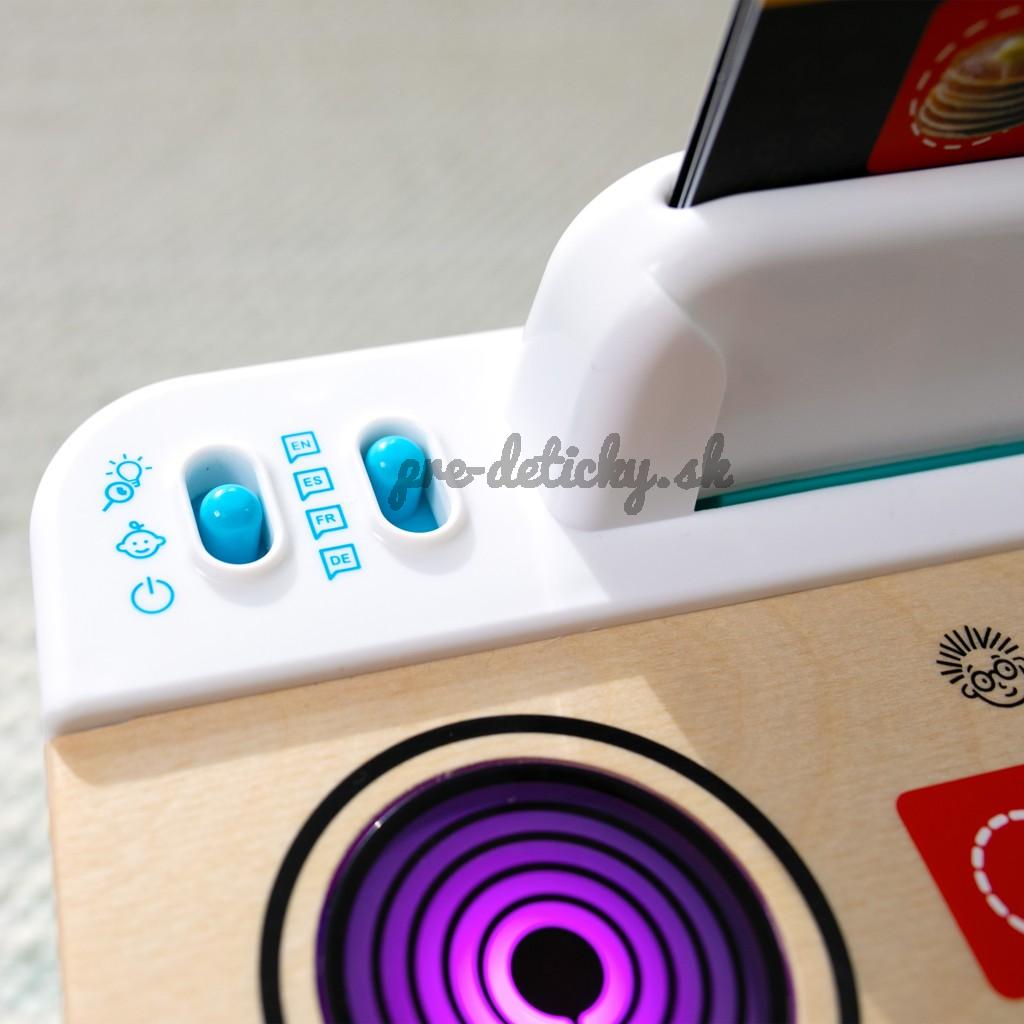 Pomôžte dieťaťu spoznať súčasti okolitého sveta, ako sú jedlá, farby a tvary, s kuchynkou Baby Einstein + Hape Magic Touch. Táto farebná kuchynka na hranie z dreva s certifikátom FSC je vybavená rúrou, drezom a varnou doskou, ktoré pomáhajú bábätku napodobňovať varenie! V režime Play môžu deti skúmať zvuky a melódie varenia. V režime Discovery - Objavuj sa môžu batoľatá učiť jedlá, farby a tvary v angličtine, španielčine, francúzštine a nemčine. 3 kartičky receptov pomáhajú bábätku „uvariť“ až 6 receptov na raňajky, obedy alebo večere pomocou priloženého hrnca a lyžice. Stlačte vybraný dotykový symbol na ultra citlivej varnej doske Magic Touch, aby ste uvarili každý recept za zvukov hudby a varenia. Bábätko bude zvedavé, keď bude otáčať gombíkmi sporáka a kohútika, čím aktivuje svetlá a zvuky. Táto malá prenosná kuchynka, ktorá je ideálna na hranie na zemi, pomáha podporovať rozvoj jemnej motoriky dieťaťa a inšpiruje k spoločnej hre s rodinou a priateľmi. Pre deti od 9 mesiacov do 4 rokov. Obsahuje 3 AA batérie.