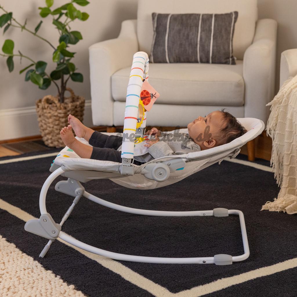 - 2 režimy: Aktivujte stojan pre použitie ako stabilné sedadlo pre bábätko; deaktivujte stojan a jemne hojdajte sedadlo na upokojenie dieťaťa alebo použite ako hojdačku pre batoľa; nevhodné na spánok