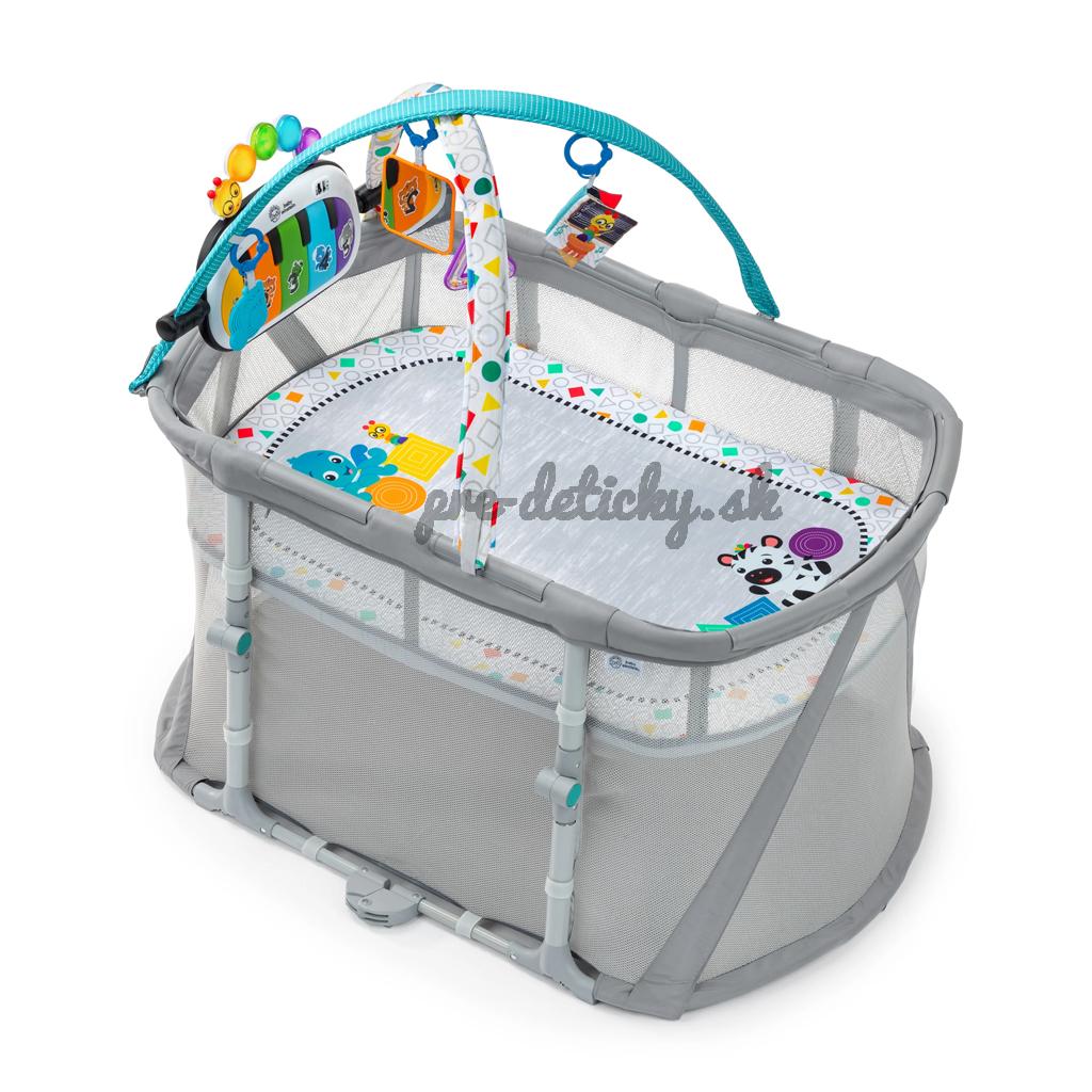 BABY EINSTEIN Postieľka s ohrádkou na hranie a klavírom 3v1 Kick & Snooze™ 0m+