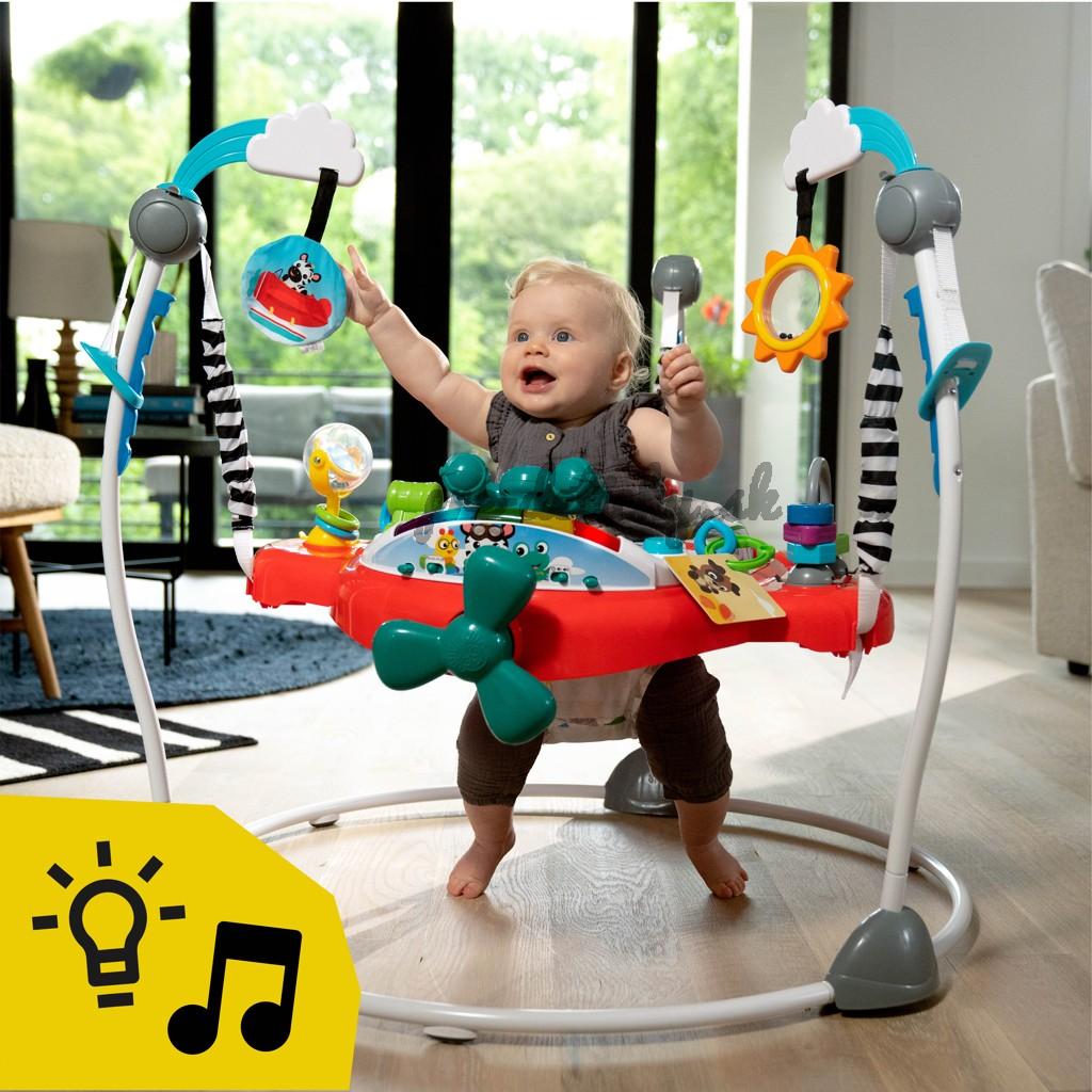 - skákadlo Baby Einstein Ocean Explorers Airplane Adventure s motívom lietadla, odmeňuje skoky dieťaťa hudbou a svetlom a rozvíja tak jeho hrubú motoriku