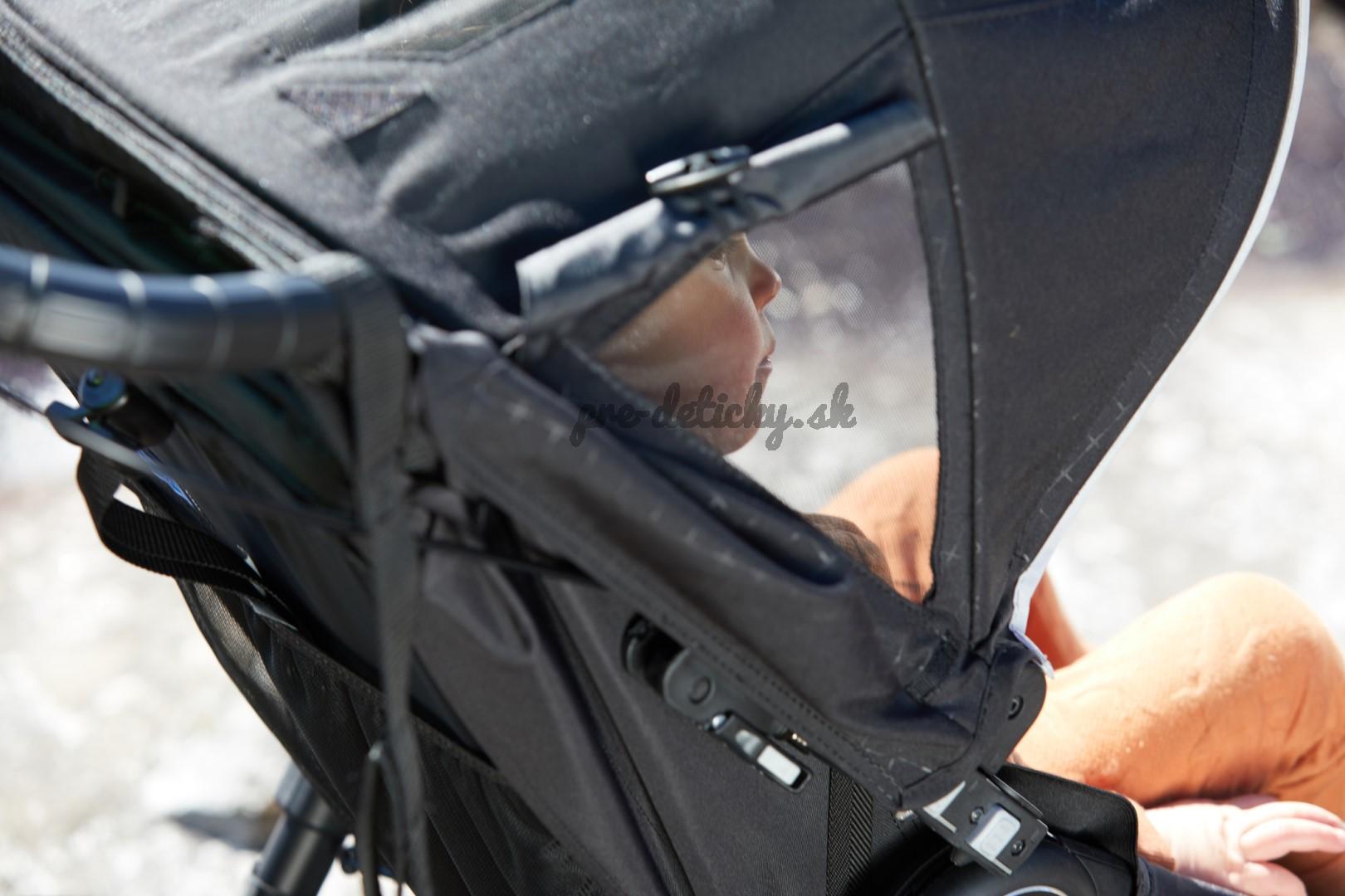 - Veľká polohovacia strieška s okienkami a uzatváracím vetracím otvorom na suchý zips