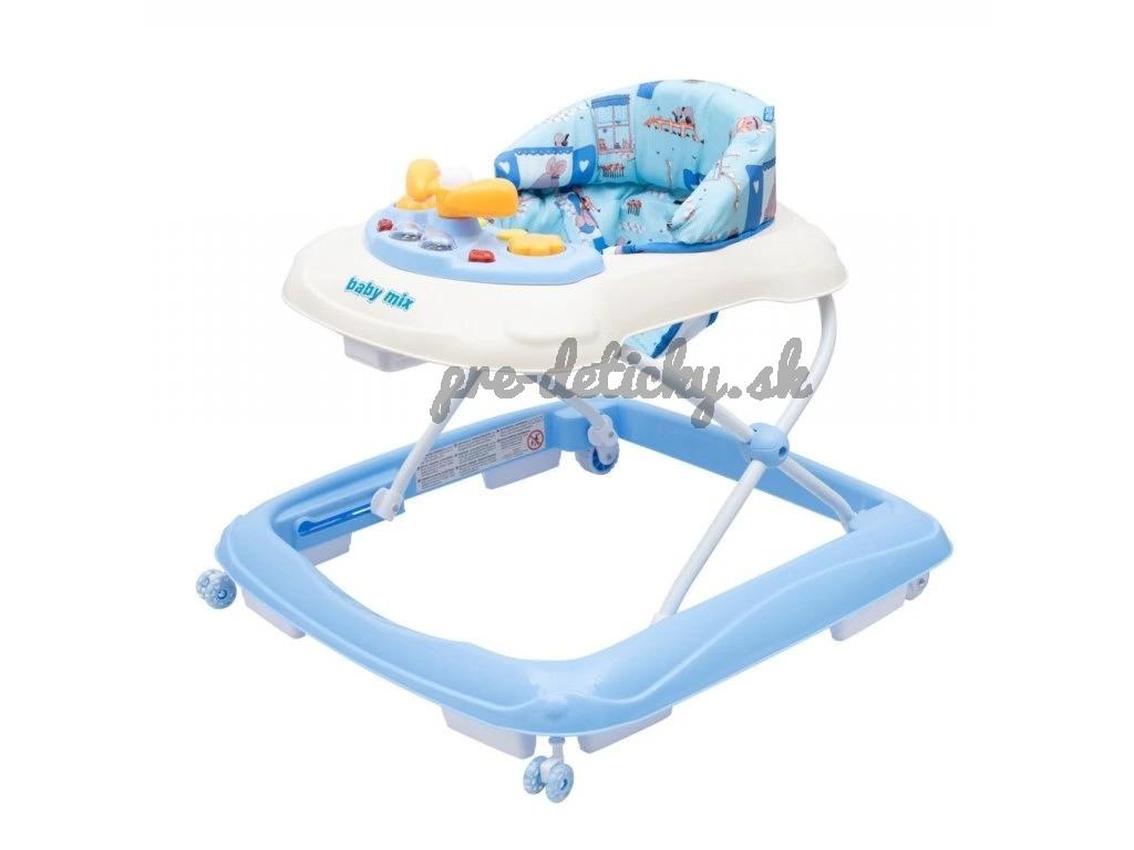 Multimediálne chodítko Baby Mix so silikónovými kolieskami. Chodítko je vybavené pohodlným ergonomicky tvarovaným sedadlom, ktoré zabezpečuje správne držanie chrbtice. Multimediálny panel obsahuje rôzne svetelné efekty, otočný volant, ktorým možno otáčať, tlačidlá na prehrávanie skladieb a dve svetlá. Krásne chodítko na hranie očarí malých objaviteľov a umožní im hrať sa ešte dlhšie. Chodítko je vybavené špeciálnym systémom proti prevráteniu, ktorý zaistí pohodlie a bezpečnosť vášho dieťaťa.