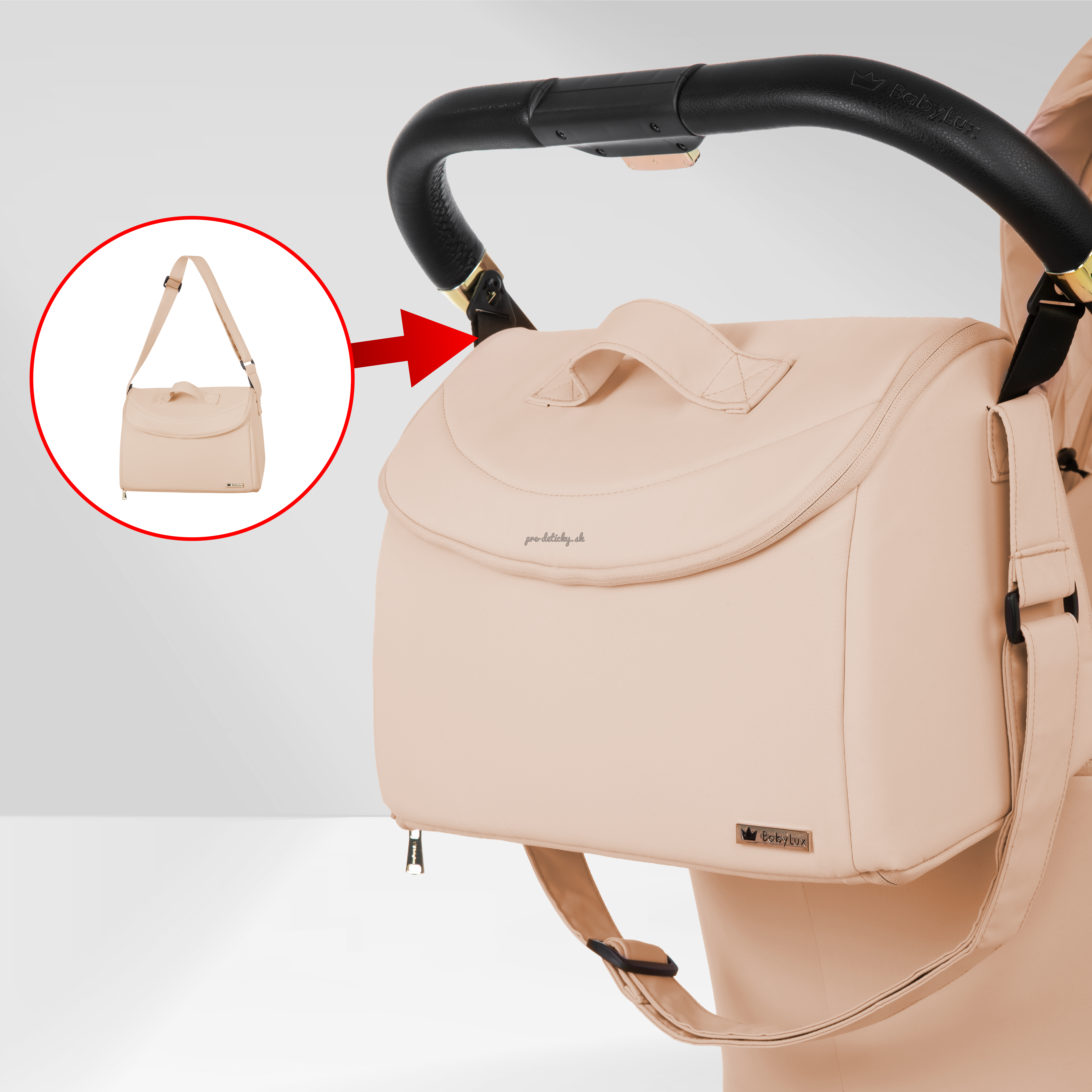 - Noste ju, ako chcete: vybavili sme ju pohodlnou rukoväťou a nastaviteľným ramenným popruhom. Môžete ju rýchlo vybrať z kočíka a vziať so sebou ako elegantnú osobnú tašku, ktorá dokonale doplní váš outfit.