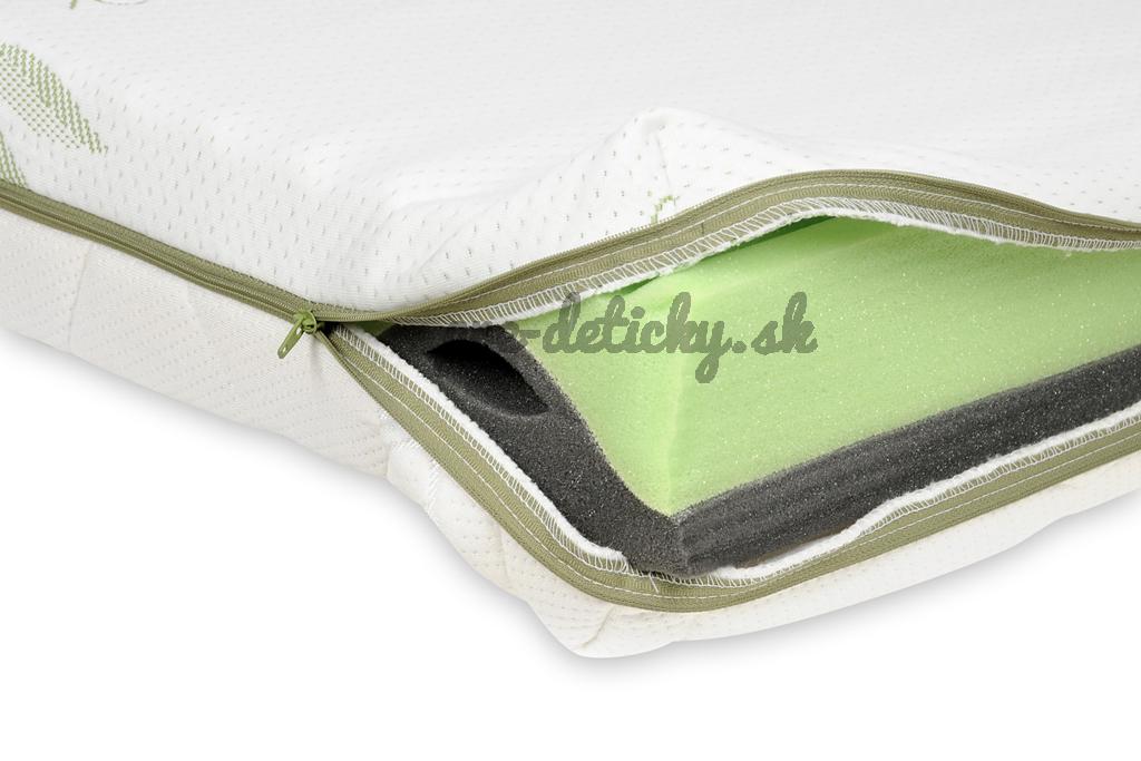 Poťah matraca ponúka mnoho výhod vďaka použitiu prírodných bambusových vlákien a výťažku z Aloe Vera, ktoré udržujú pokožku dieťaťa jemnú a hydratovanú. Poťah má antibakteriálne a antialergické vlastnosti. 2-dielny poťah s funkciou Easy Wash - 360-stupňový zips - tiež uľahčuje udržiavanie poťahu v čistote.