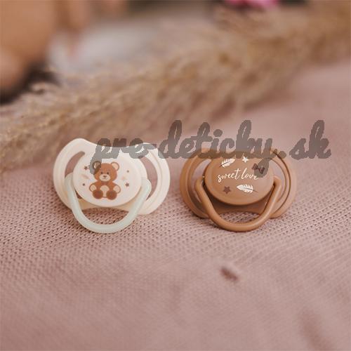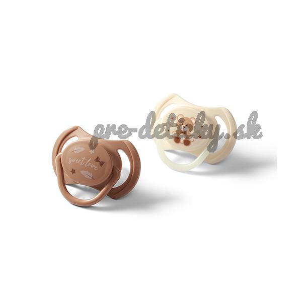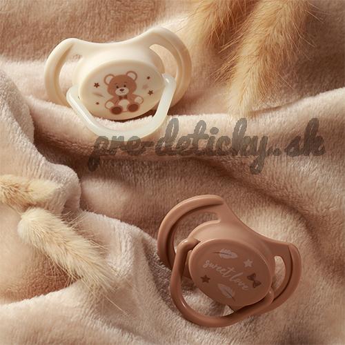 - Denný a nočný cumlík – v balení nájdete jeden klasický a jeden so svietiacou rúčkou, pripravený upokojiť dieťa aj v noci