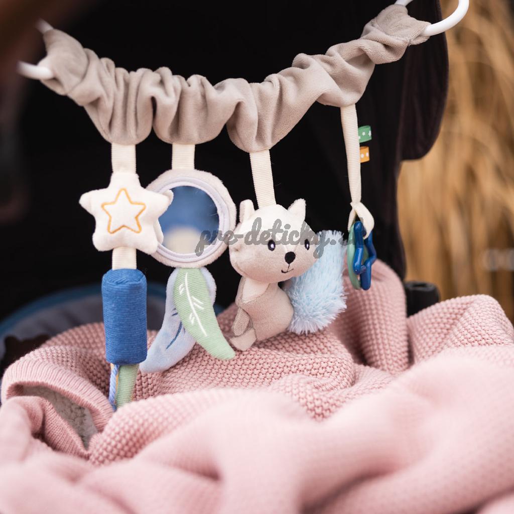 - Pomocou praktického a univerzálneho úchytu pripevníte hračku ku kočíku, autosedačke aj postieľke.