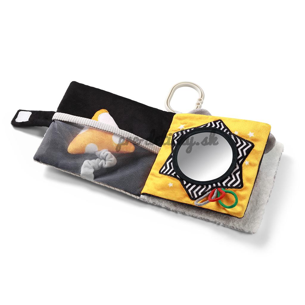 Kniha je ľahká a skladná, ideálna pre malé ručičky. Túto vysoko kontrastnú knihu môžete zavesiť na postieľku, kočík alebo autosedačku.