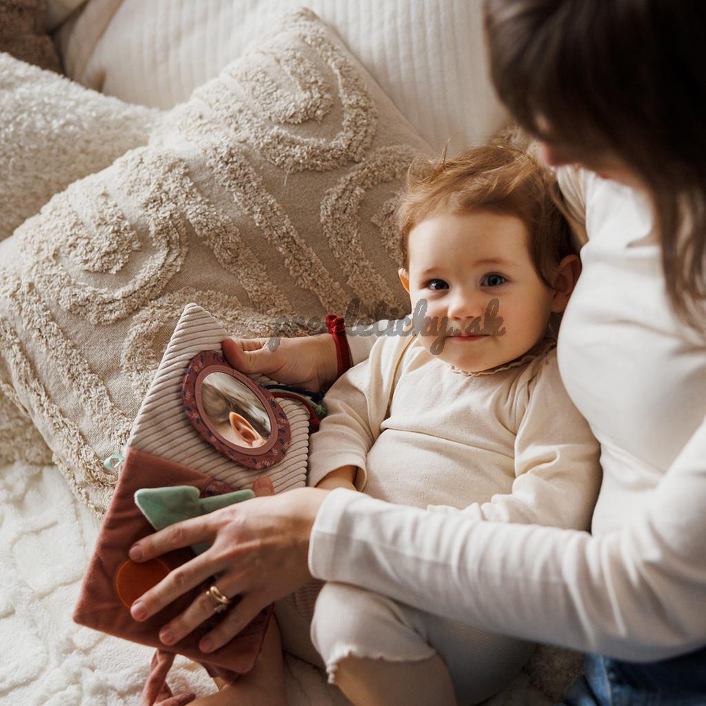 - Zrkadlo: Kniha obsahuje bezpečné a vizuálne pútavé zrkadlo. Podporuje naťahovanie a dotýkanie sa, rozvíja koordináciu ruka-oko. Vaše dieťa bude fascinované svojim vlastným odrazom.