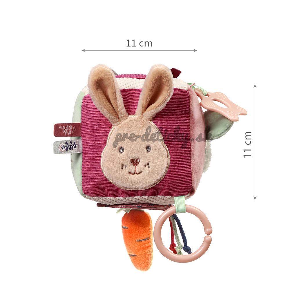 Plyšová senzorická kocka Králik Karo je hračka plná prekvapení pre bábätká, ktorá podnecuje ich fantáziu, zapája zmysly a pomáha rozvíjať jemnú motoriku.