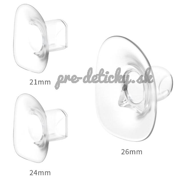 Súčasťou balenia sú tri rozličné veľkosti silikónových lievikov. Vďaka tomu si viete vybrať veľkosť ideálnu pre bradavku. Vďaka pomôcke na meranie bradavky, ktorá je súčasťou, jednoducho vložením bradavky zistíte, akú veľkosť potrebujete.