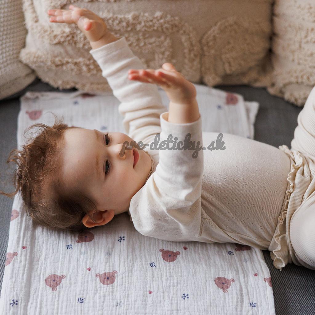 - Vzdušné: Ľahká väzba vlákien robí mušelínové plienky dokonale priedušné. Môžete ich použiť ako priedušnú zavinovačku alebo deku na prechádzky – vaše dieťa sa neprehreje ani sa nepotí.