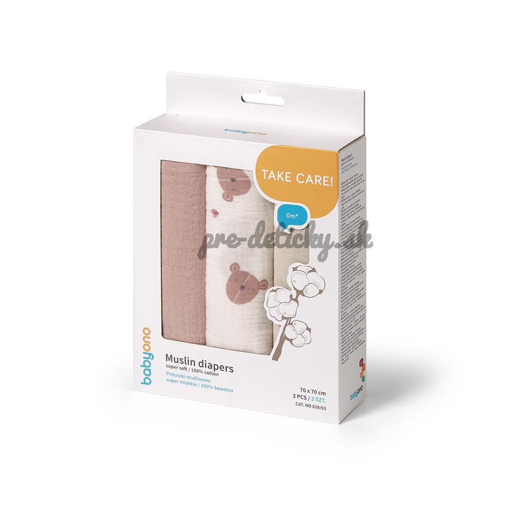 BABYONO Plienky mušelínové Super Soft 3 ks, Grey 70 x 70 cm