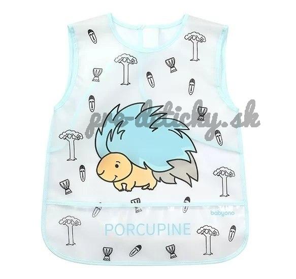 Podbradník pre deti vo veku 24m+ - chráni oblečenie dieťaťa pred znečistením - je vyrobený z ľahko čistiteľného materiálu - uzáver na suchý zips - praktické vrecko - trendy dizajn a veselý motív