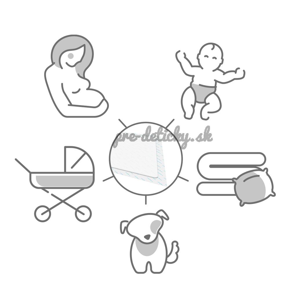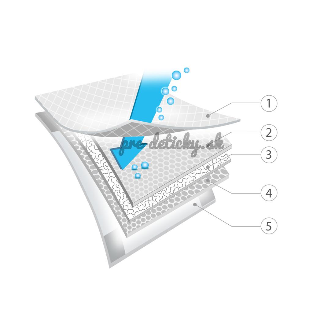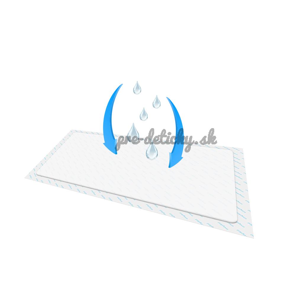 Superabsorpčný materiál vo vnútri podložky viaže vlhkosť rýchlo a neutralizuje akékoľvek nepríjemné pachy.