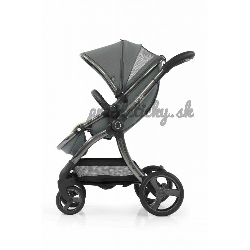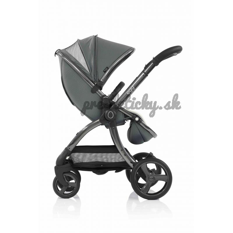 - balenie kočíka obsahuje podvozok, sedaciu časť so strieškou, nákupný košík, pláštenku, nánožník a sieťku proti hmyzu (nájdete ju v kapsičke zo spodnej strany opierky nôh, možno použiť aj na hlbokú vaničku kočíka egg²®;