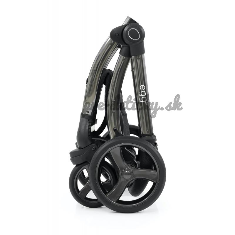 - rám kočíka egg²® je kompaktný a po zložení samostatne stojí na kolesách bez toho, aby sa jeho rukoväť dotýkala podlahy. Samozrejmosťou zostalo komfortné skladanie jednou rukou;