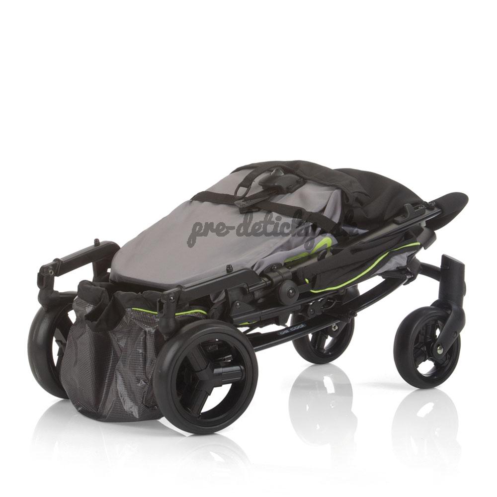 Športový kočík Hip Hop má ľahkú hliníkovú konštrukciu. Je priestranný a aj napriek tomu veľmi skladný. Má polohovateľnú opierku chrbta, v cene je nánožník, košík a igelitový kryt. Na kočík sa dá pripevniť aj autosedačka Egg