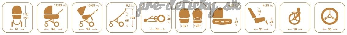 - Rozmer rozloženého kočíka: d, š, v, 106 x 61 x 119 cm
