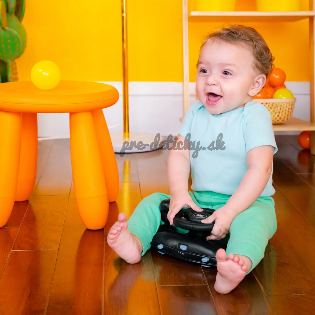 Nielenže vzhľad štýlového autíčka vaše deti ohromí, ale nápaditá hra s originálnymi elektronickými zvukmi autíčka, svetlami, riadením a volantom, ktoré deti milujú, umožňuje deťom naučiť sa viac zručností prostredníctvom hry. Odnímateľnú podložku pod volant so zvukovými a svetelnými efektmi možno použiť aj na hranie na podlahe alebo na cestách.