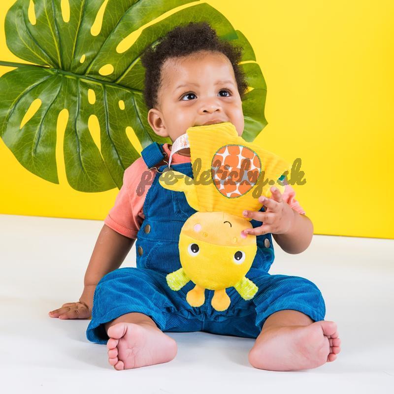 Dieťatko si zamiluje mäkkú látku, podmanivé vrúbky a šuštiaci zvuk. To všetko doplnia hryzačky v tvare nôh, na upokojenie boľavých ďasien dieťatka. Maznáčika si môžete jednoducho zobrať zo sebou kamkoľvek na cesty.