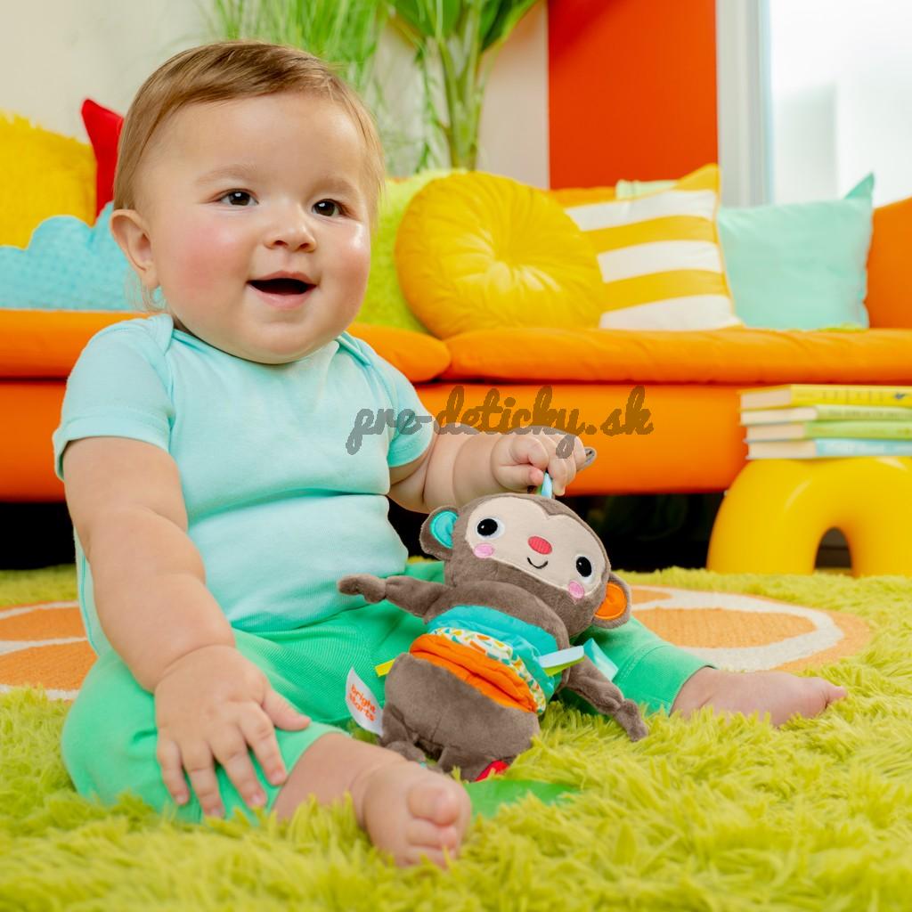 Tento plyšový opičí kamarát má priložený odkaz, že sa bude zdržiavať všade tam, kam sa vy alebo dieťa vyberiete. Hračka sa ľahko pripevňuje na kočíky, autosedačky, nosiče a ďalšie zariadenia, aby zaujala dieťa a prinútila ho skúmať a rozvíjať tak zábavu a zručnosti počas cestovania.