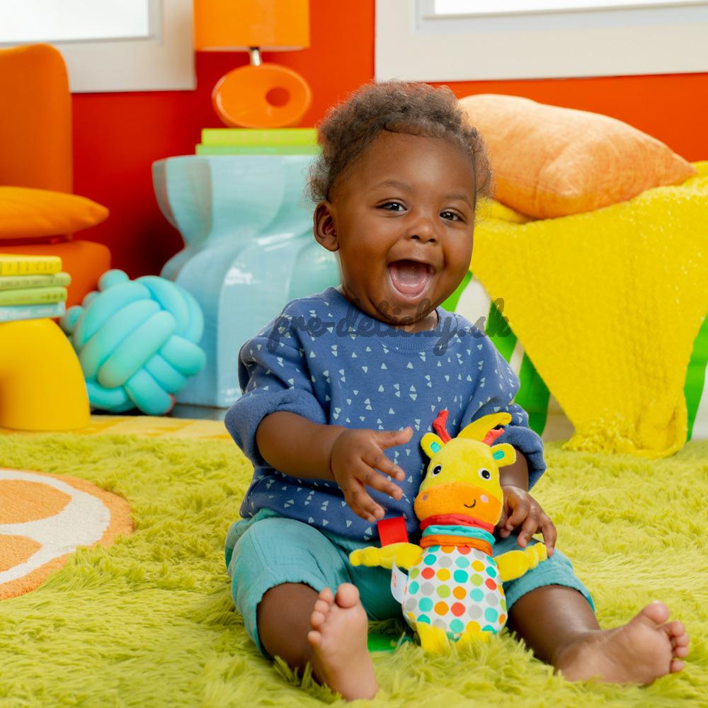 Tento plyšový žirafí kamarát má priložený odkaz, že sa bude zdržiavať všade tam, kam sa vy alebo dieťa vyberiete. Hračka sa ľahko pripevňuje na kočíky, autosedačky, nosiče a ďalšie zariadenia, aby zaujala dieťa a prinútila ho skúmať a rozvíjať tak zábavu a zručnosti počas cestovania.