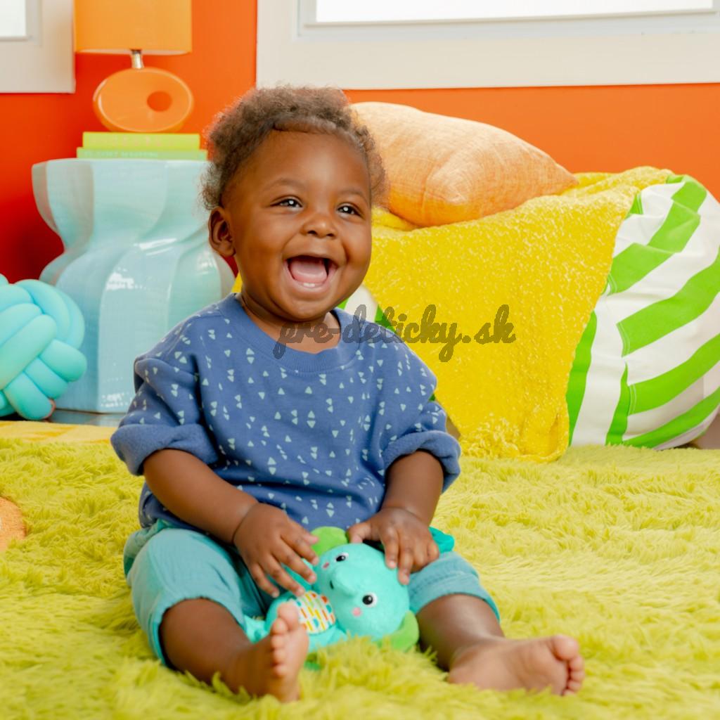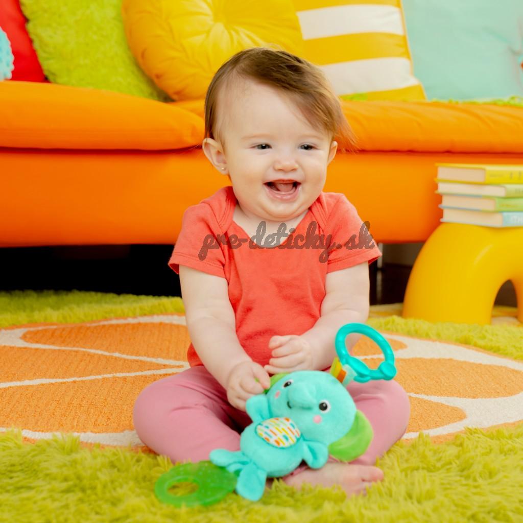 Keď bábätko zatiahne za zelený list, jeho kamarát z džungle zahrá 4 rôzne melódie! Vďaka stimulujúcim farbám, textúram a zvukom bude dieťatko na svojho nového slonieho kamaráta siahať a chytať ho, zatiaľ čo vy si budete užívať sledovanie rozvoja nových zručností hlavne počas prvého roka dieťaťa.