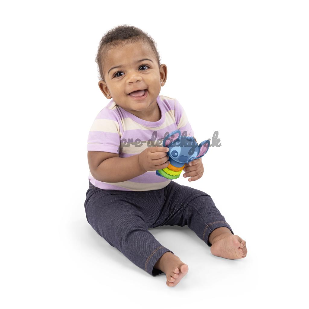 Zábava na plný plyn so zmyslovou hračkou s obľúbeným Stitchom! Pestrofarebný dizajn a tropický nádych premenia každý hrací čas na malé dobrodružstvo. Dieťatko môže otáčať textúrované krúžky, ktoré vydávajú príjemné klikacie zvuky a trasením hrať ako s hrkálkou. Hračka stimuluje zrak, sluch a jemnú motoriku a to všetko naraz! Vďaka ľahkej a kompaktnej konštrukcii je ideálna aj na cesty, jednoducho sa zmestí do prebaľovacej tašky. Vhodná pre bábätká už od narodenia. Skvelý tip na darček k narodeniu, narodeninám, Vianociam či iným príležitostiam.