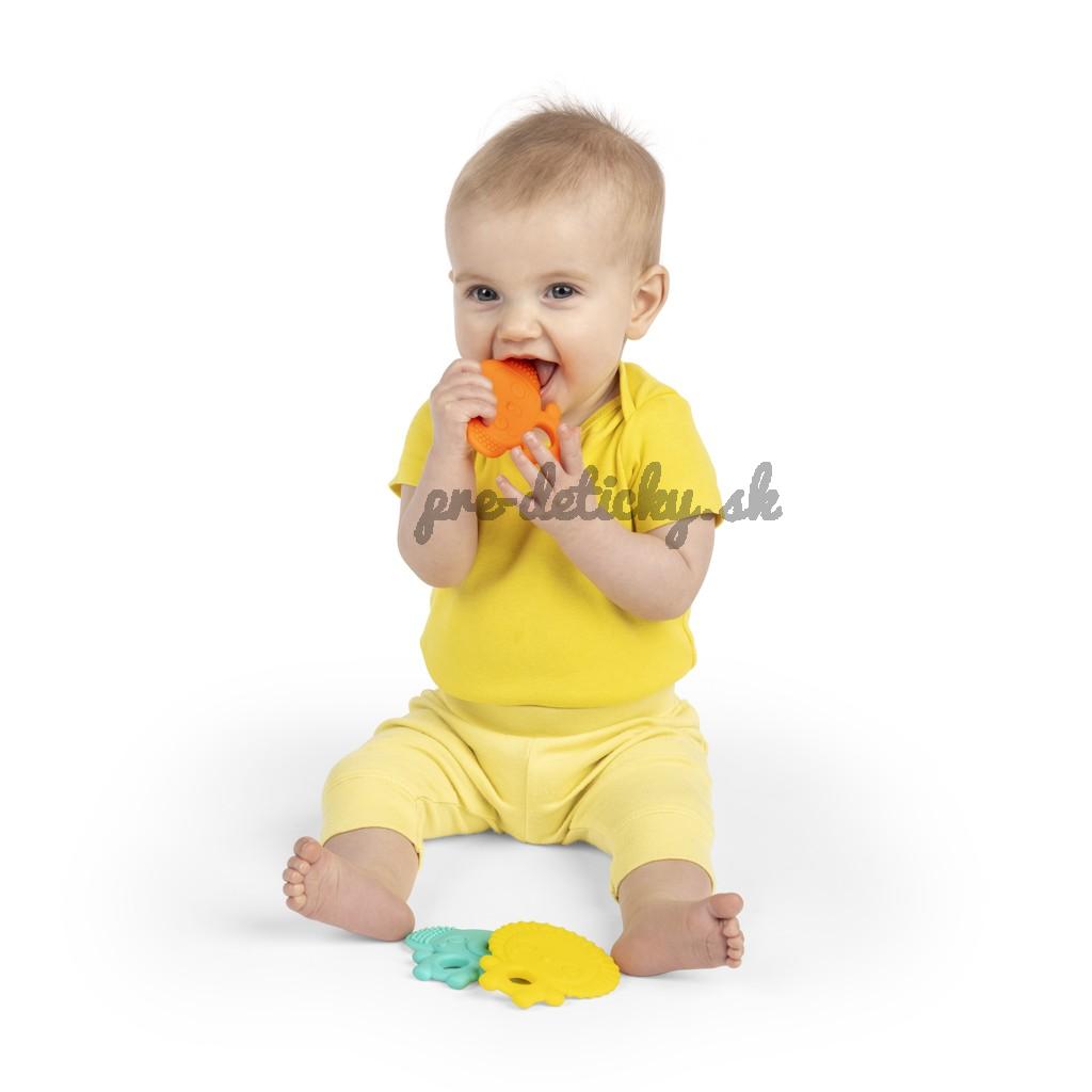 Kto hovorí, že prerezávanie zúbkov nemôže byť zábava?!Predstavujeme vám tri textúrované hryzačky, ktoré pomáhajú upokojiť boľavé ďasná a stimulujú dieťa pri prerezávaní zúbkov. Dieťatko si zamiluje pestré farby, rôznorodé textúrované zvieracie prvky a usmievavé tváre tohto tria hryzačiek. Veľkosť vhodná pre malé rúčky vďaka úchytkám v tvare kruhu "bruška. Každý malý hrebeň a hrbolček pomôže masírovať boľavé ďasná dieťaťa.