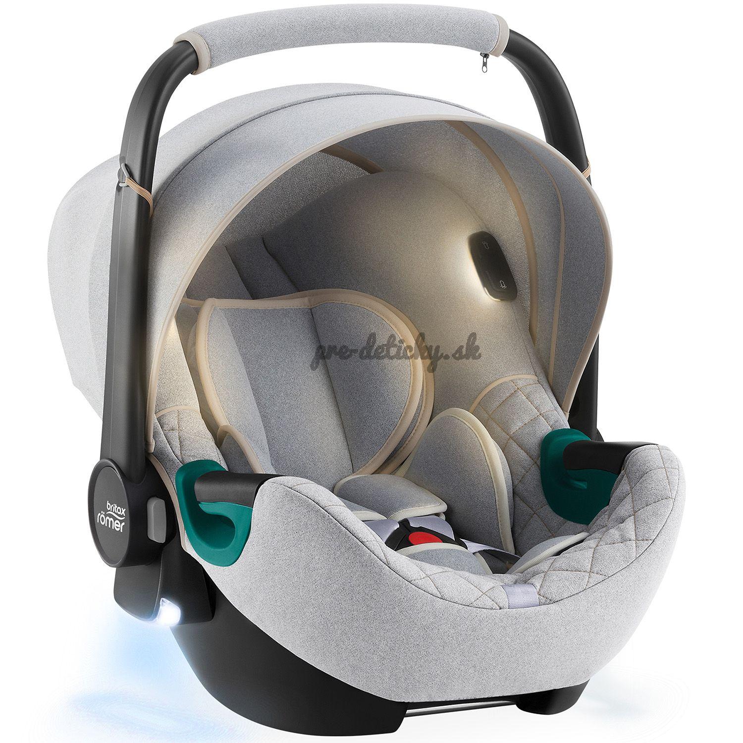 Potom je tu ďalší pár svetiel, ktorý má inú funkciu. Teplé, tlmené svetlá vnútri autosedačky zabezpečujú, že vždy vidíte, čo vaše dieťa robí. Svetlá vám tiež pomôžu ľahšie pripútať dieťa v tme auta. Majú nastaviteľný automatický spínač, ktorý zapne svetlá, vy pripútate dieťa do sedačky a svetlá sa po jednej minúte vypnú.