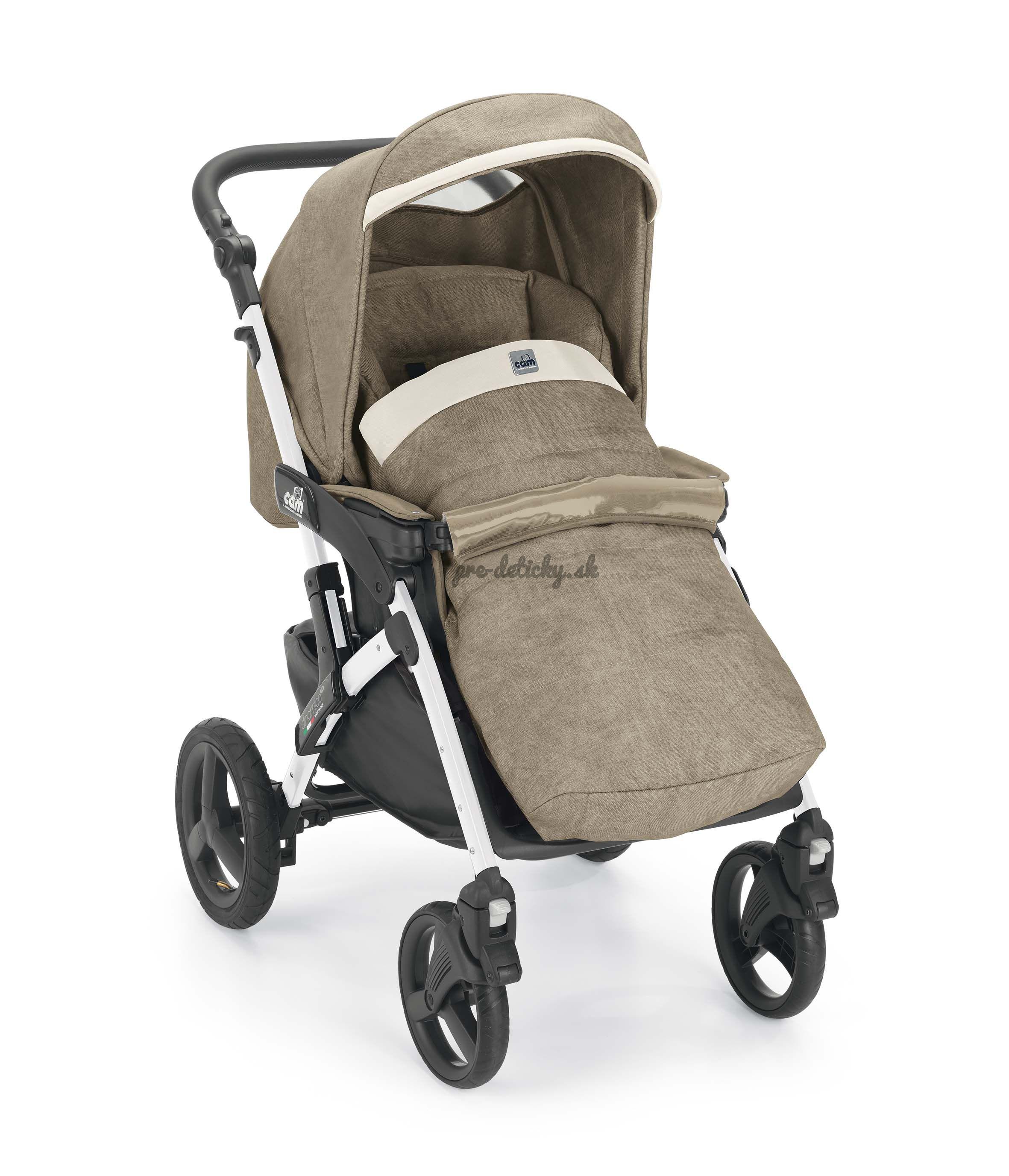 - Športová časť obojstranná, vďaka patentovanému systému Via Vai Systém Reverse, ručne vyrobená nastaviteľná rukoväť z kože, jednoducho odnímateľné nafukovacie zadné kolesá s ložiskami, predné otočné kolesá s aretovacím systémom, centrálna brzda na zadné kolesá, jemné predné a zadné odpruženie, jednou rukou nastaviteľná opierka chrbta má 4 polohy, nastaviteľné polohovanie nôh, odnímateľné madlo, 5 bodový bezpečnostný pás. Príslušenstvo: hlboká vanička, nánožník, pláštenka, široký nákupný košík s praktickým otváraním. Odnímateľné a prateľné poťahy na 30°C. Kompaktné skladanie so športovou časťou ako v smere jazdy tak aj proti smeru jazdy, s madlom pre prenášanie.