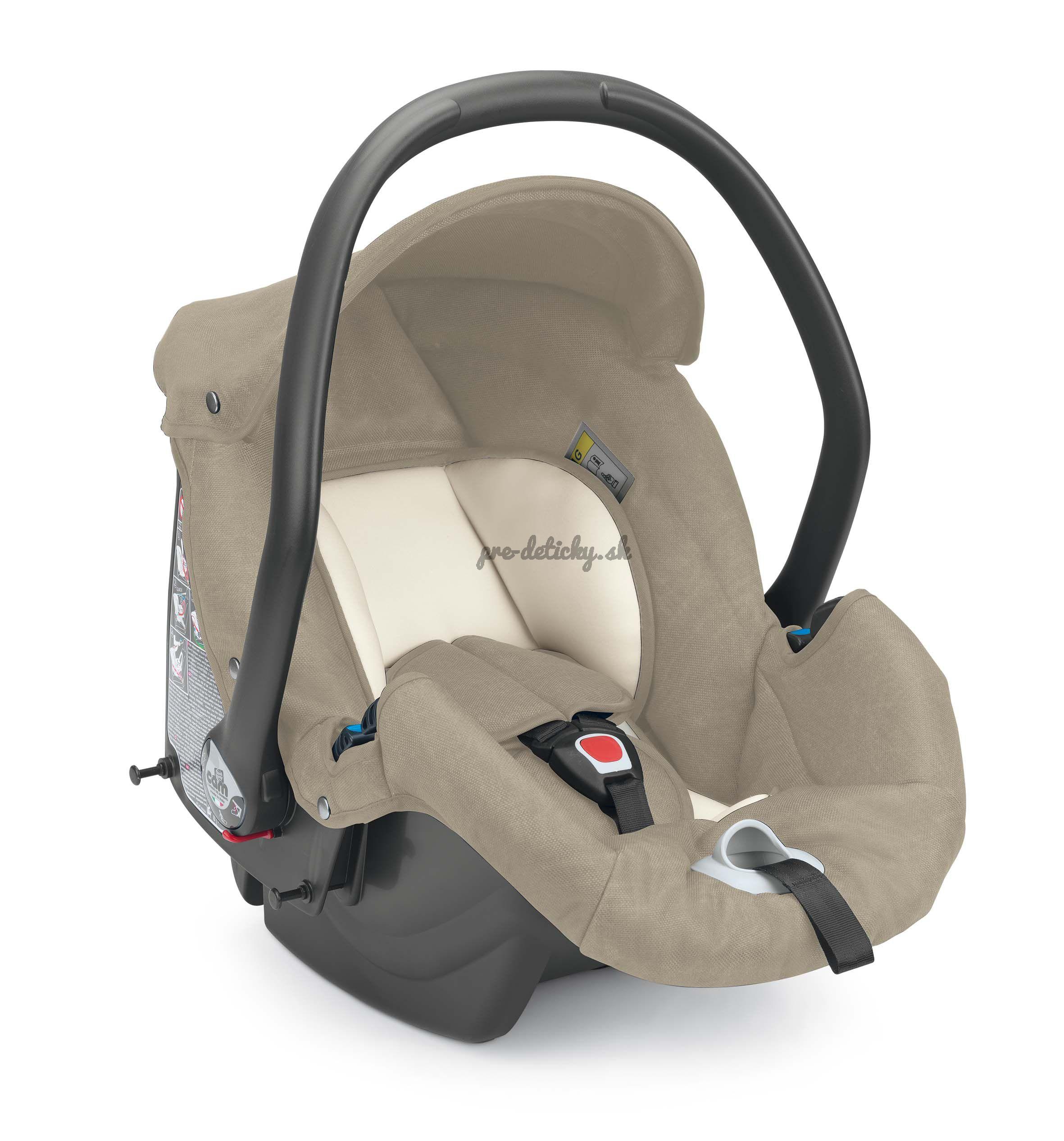- Autosedačka (0-13kg) Podlieha európskemu ECE R44/04 predpisu pre skupinu 0+(0-13 kg) s ochranou pri bočnom náraze, anatomická opierka hlavy a polstrovaním pre ochranu nezpevneného chrbátika dieťaťa, odopínateľná strieška, polstrované bezpečnostné pásy a medzinožný pás, praktický mechanizmus k nastaveniu pásov, nastaviteľné vedenie pásov, hajdacia základňa s protiskĺzavou gumou. Možno ju pripevniť do polohy proti smeru jazdy pomocou 3 bodového bezpečnostného pásu v automobile.