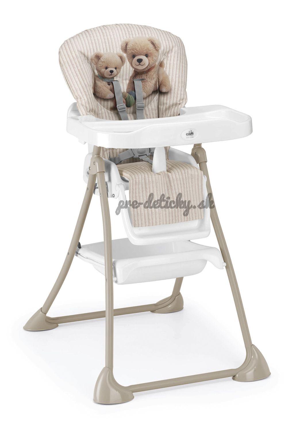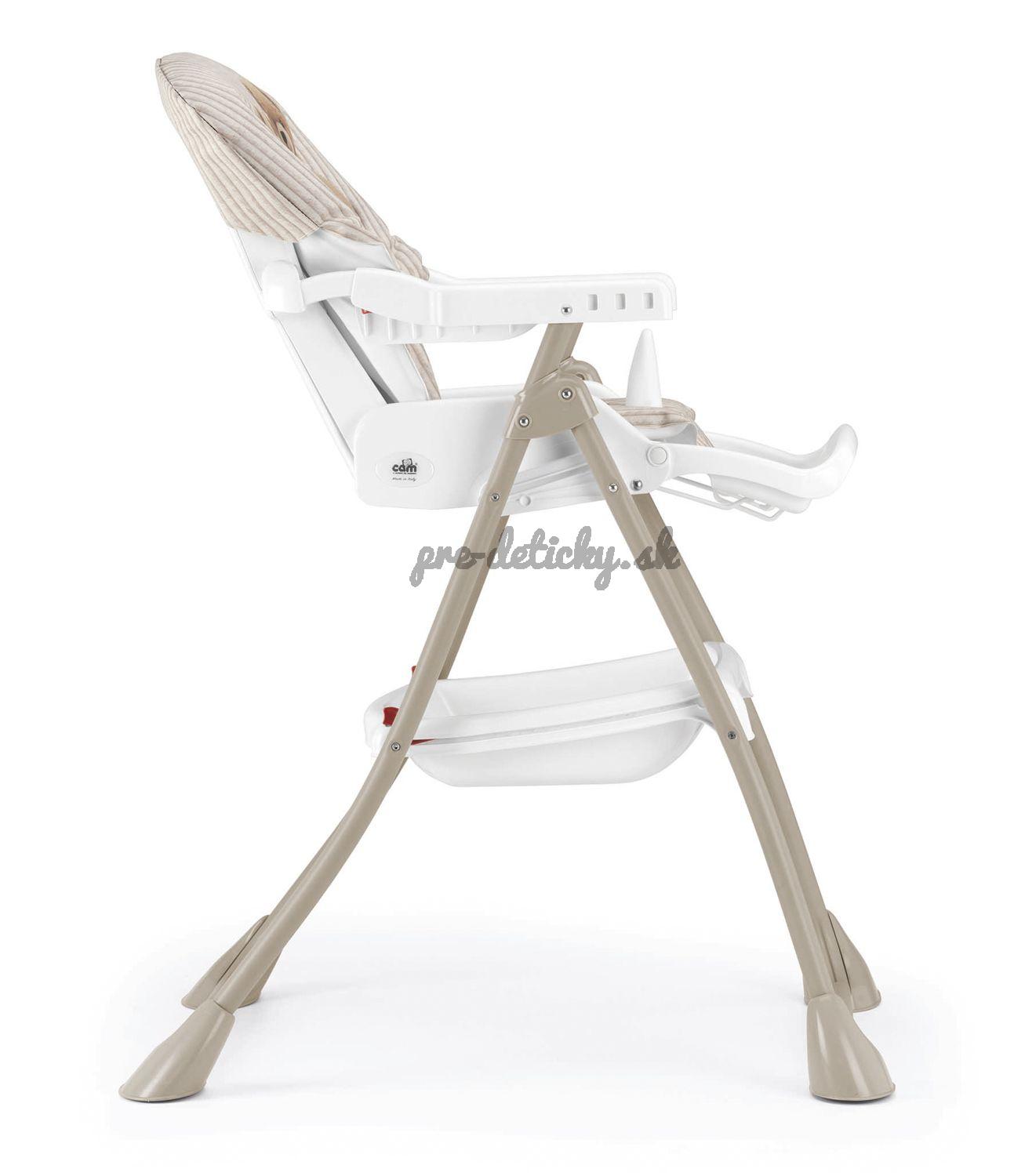 Stolička je vybavená priestranným jedálenským pultom, ktorého výšku možno nastaviť podľa potreby. Mäkko polstrované sedadlo možno polohovať do 3 rôznych polôh.