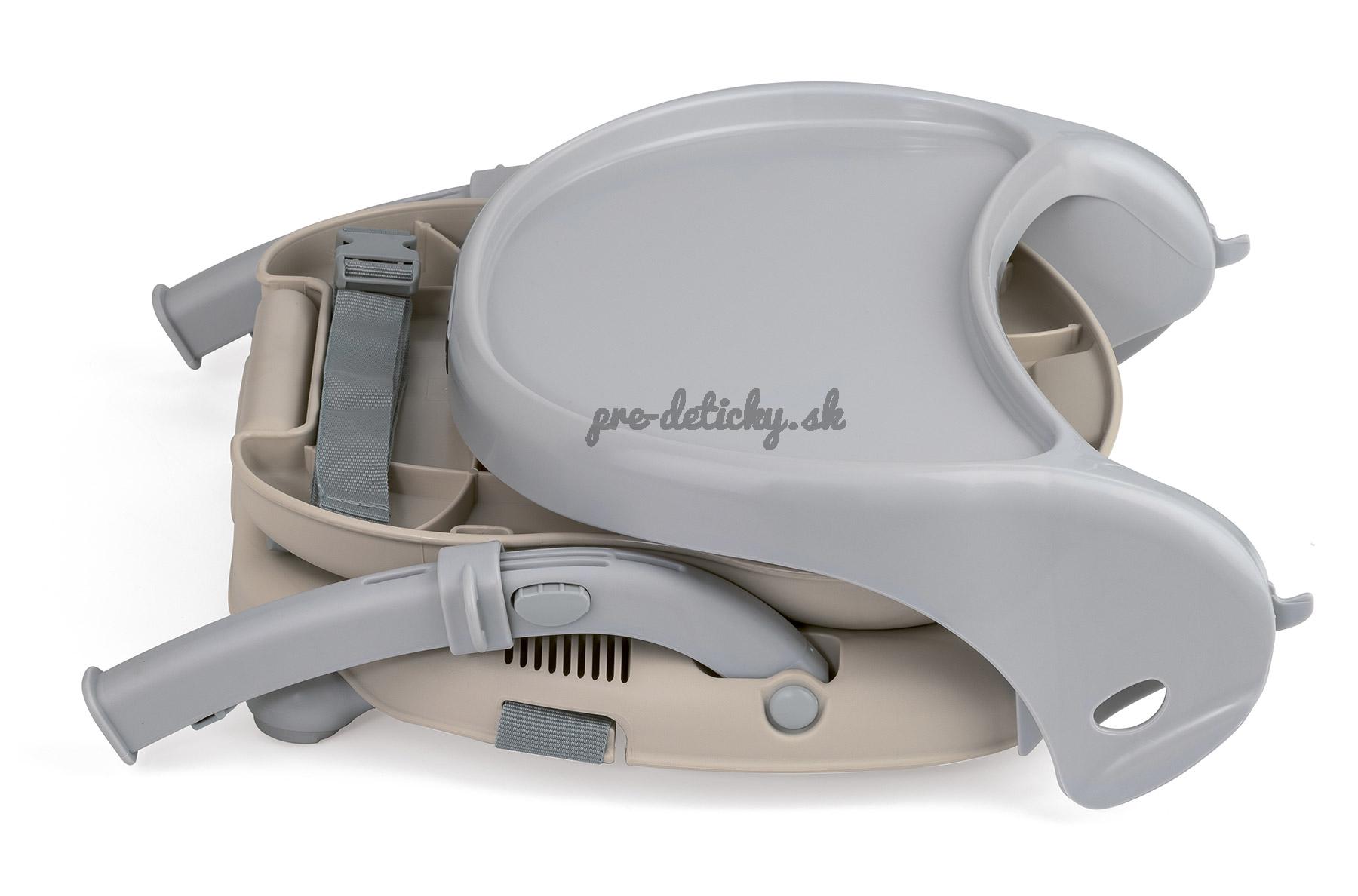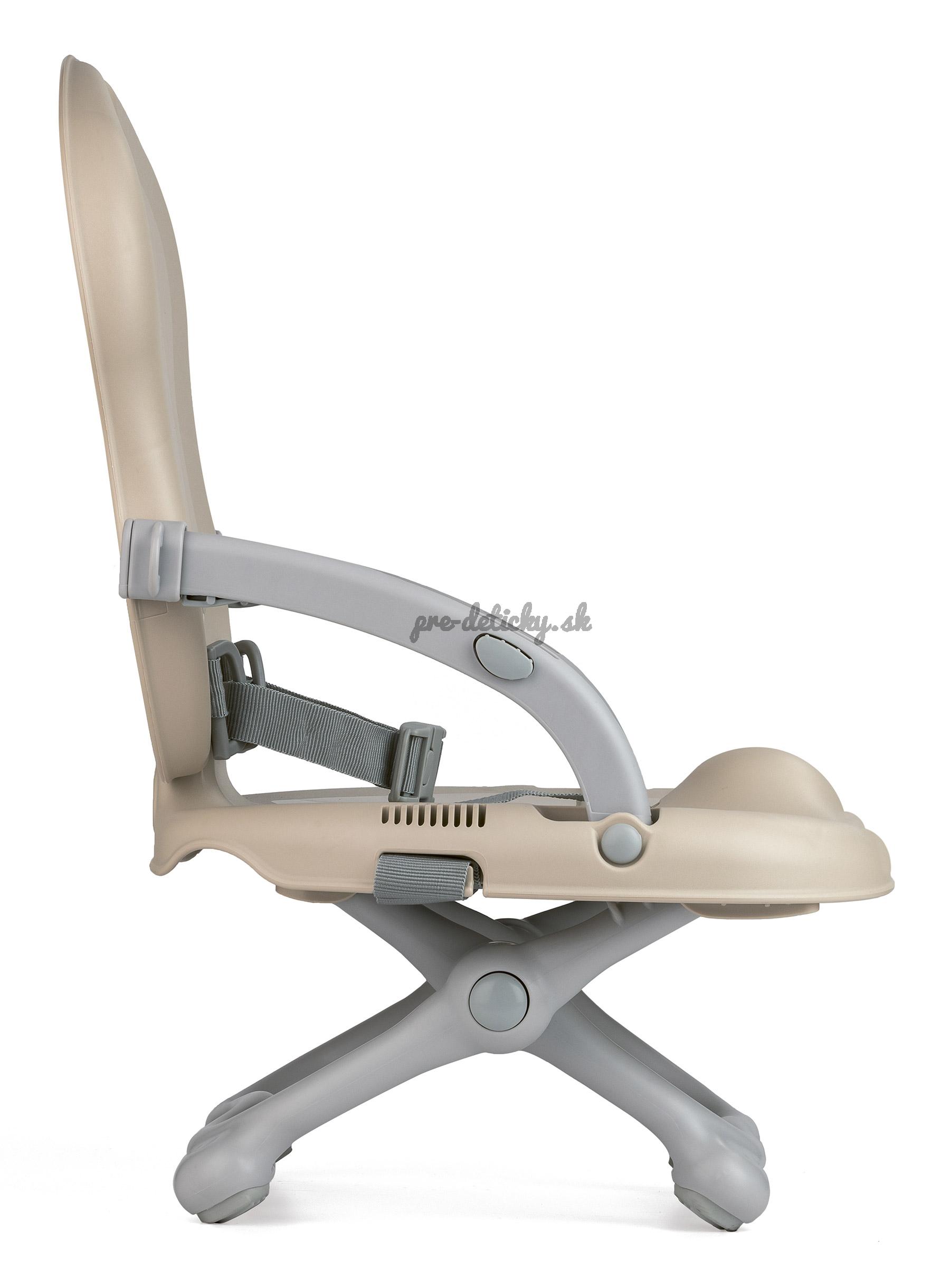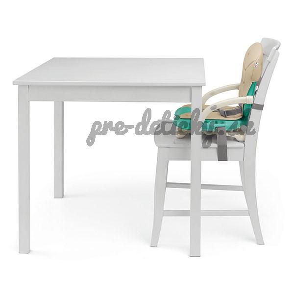 Je vybavena zvláštními popruhy, pomocí nichž lze pevně přivázat židličku ke klasické kuchyňské židli.