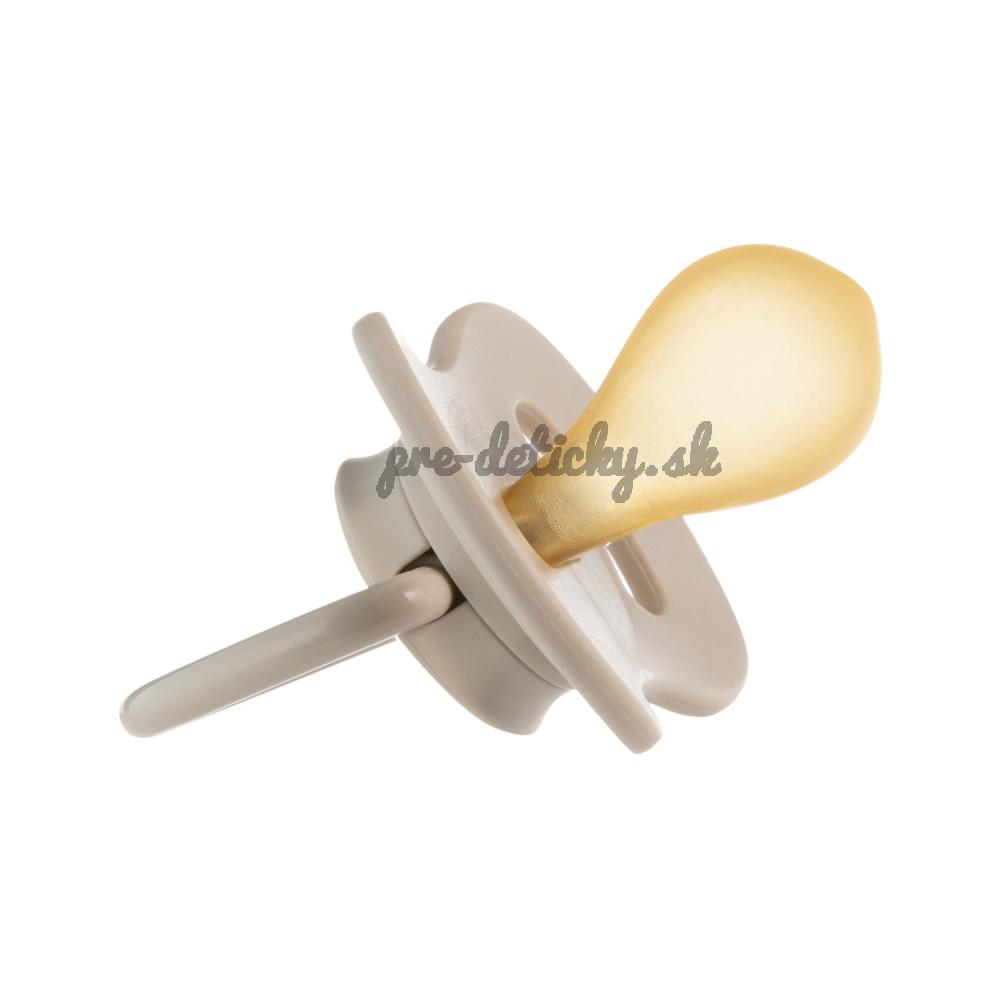 Kaučukový cumlík so špičkou okrúhleho tvaru v prírodných farbách z kolekcie NUDE. Je vyrobený z prírodného kaučuku, ktorý je charakteristicky žltkastý a matný.