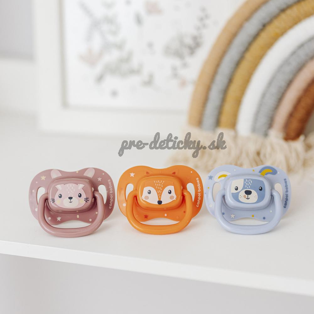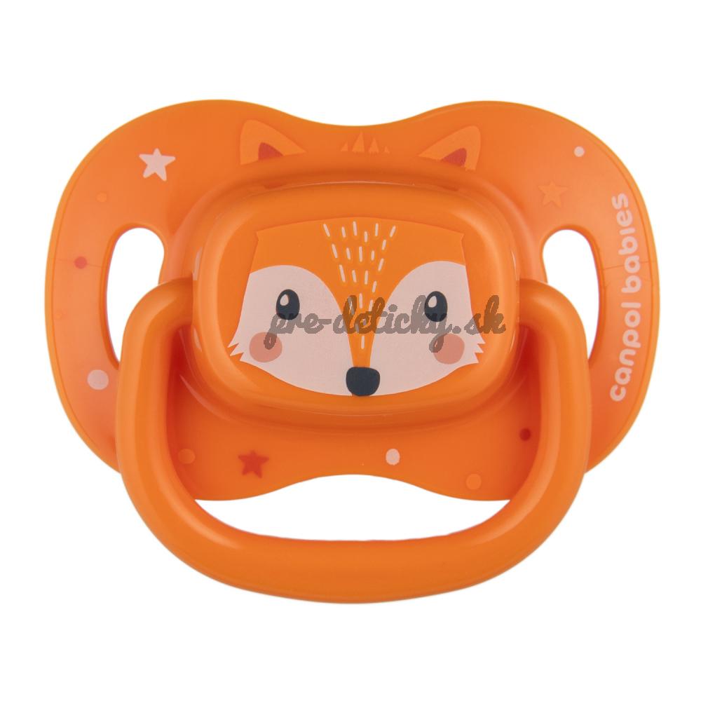 CANPOL BABIES Cumlík silikónový symetrický Cute animals 0-6m 1ks oranžový
