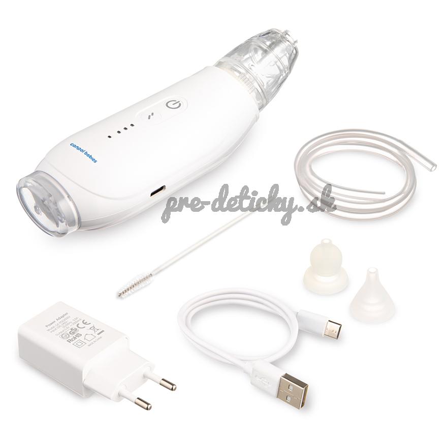 - Ľahko sa udržuje v čistote – vďaka jednoduchej sterilizácii silikónových nosných nástavcov a vyberateľnej nádobke na hlien a čistiacej kefke.