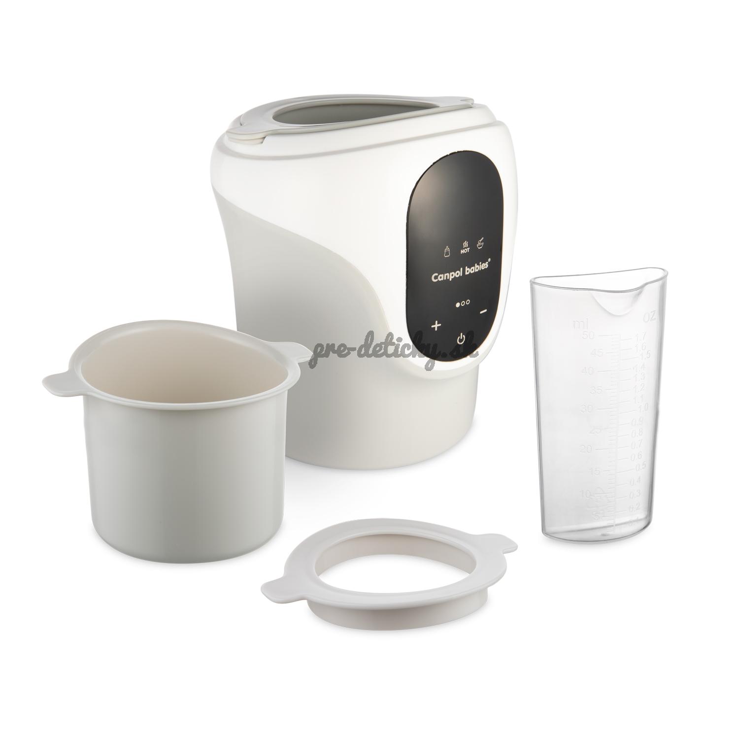 Elektrický ohrievač fliaš Canpol 3v1 je multifunkčné zariadenie, ktoré umožňuje jednoducho a rýchlo pripraviť jedlo pre dieťa. Zaručuje pohodlie a jednoduchosť používania. Má intuitívny dotykový ovládací panel a funkciu udržiavania teploty jedla – dokonca po celú noc! Rýchlo a rovnomerne zohrieva mlieko a jedlá v pohároch, bezpečne rozmrazuje a v prípade potreby dezinfikuje fľaše a cumlíky. Zariadenie funguje v 3 režimoch: „fľaša“ – udržuje zvolenú teplotu jedla až počas 10 hodín, „ohrev“ – rýchle zohriatie a dezinfekcia parou, a „večera“ – udržuje zvolenú teplotu jedla až počas 3 hodín. Ohrievač je univerzálny a je vhodný pre väčšinu fliaš a cumlíkov dostupných na trhu. Je nenahraditeľným pomocníkom každej matky pri kŕmení z fľaše a rozširovaní jedálnička dieťaťa.